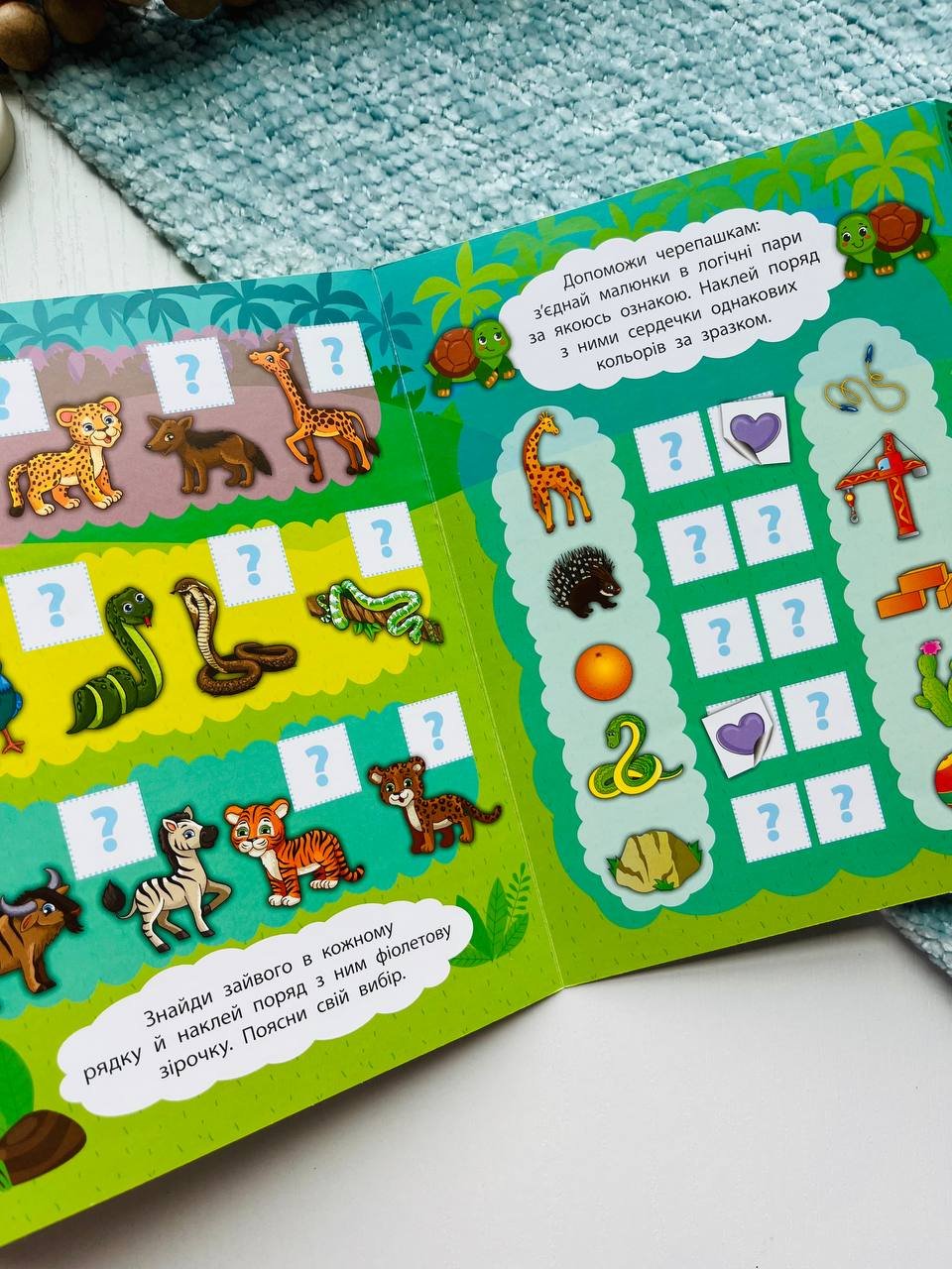 Книжка допоможе відпрацювати навички логічного мислення. Під час занять діти познайомляться із загадковим світом джунглів і потренуються добирати узагальнювальні назви, установлювати логічні зв’язки, знаходити спільні й відмінні риси, порівнювати предмети за формою, а також навчаться розрізняти поняття «частина» та «ціле».