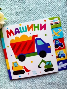 Дитяча картонна книжка в ігровій та інтерактивній формі познайомить вашого малюка зі світом машин і техніки.