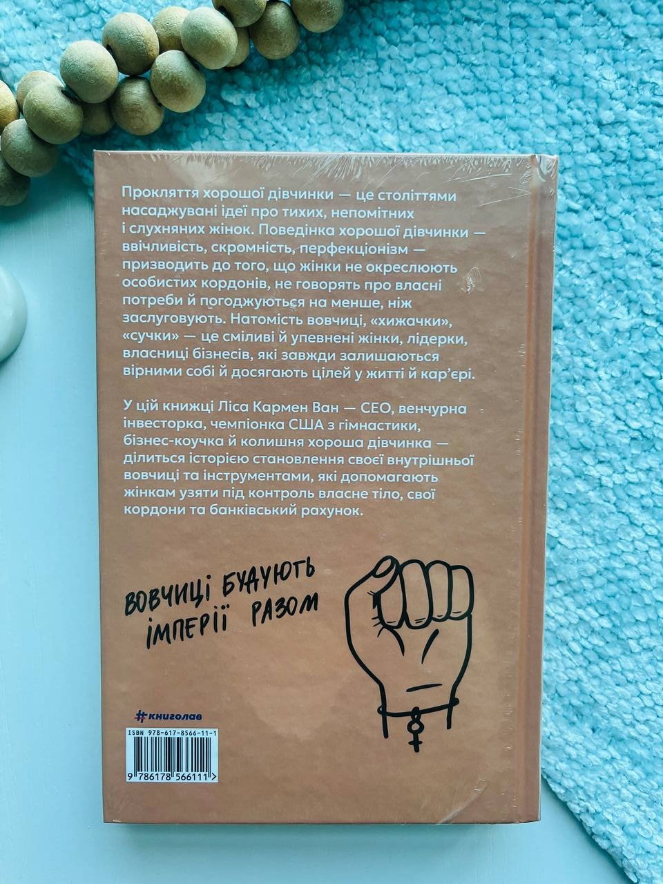 Прокляття хорошої дівчинки — це століттями насаджувані ідеї про тихих, непомітних і слухняних жінок. Поведінка хорошої дівчинки — ввічливість, скромність, перфекціонізм — призводить до того, що жінки не окреслюють особистих кордонів, не говорять про власні потреби й погоджуються на менше, ніж заслуговують. Натомість вовчиці, «хижачки», «сучки» — це сміливі й упевнені жінки, лідерки, власниці бізнесів, які завжди залишаються вірними собі й досягають цілей у житті й кар’єрі. У цій книжці Ліса Кармен Ван — СЕО, інвесторка, чемпіонка США з гімнастики, лекторка й колишня хороша дівчинка — ділиться історією становлення своєї внутрішньої вовчиці та інструментами, які допомагають жінкам узяти під контроль власне тіло, свої кордони та банківський рахунок.
