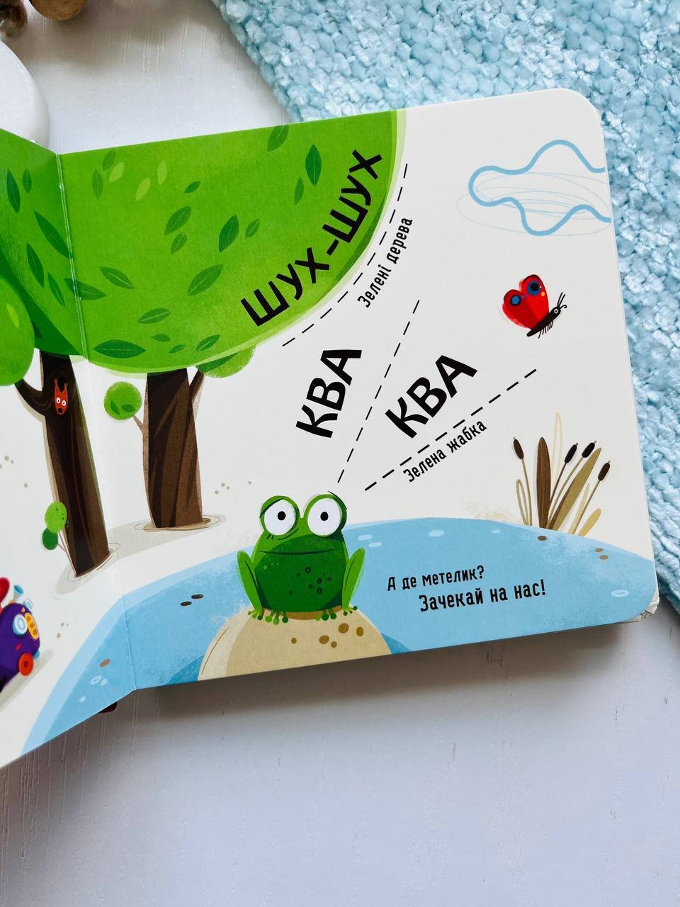 Бодьо в захватi від метелика. Він красивий і яскравий! Які кольори має метелик? А жабка, кульбабки, мурашки, машинка? Вивчай кольори разом iз Бодем i шукай їх на iлюстрацiях! А заразом вiдкрий для себе нові звуки, якi можна почути в парку, на луцi та на будiвельному майданчику. Грайся, учись i весело проводь час!