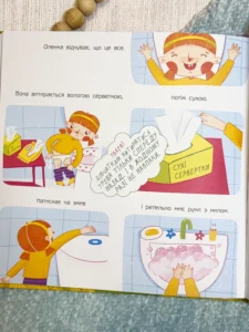 Завдяки яскравим і кумедним ілюстраціям та мінімуму тексту, дитина легко засвоїть інформацію і не відчуватиме сорому. У книжці також є поради для малюків, як поводитися у школі чи дитсадку в різних ситуаціях. Це чудова книжка для тих, хто тільки починає звикати до туалету, адже вона допомагає зрозуміти, що какати — це природно, важливо і зовсім не соромно!