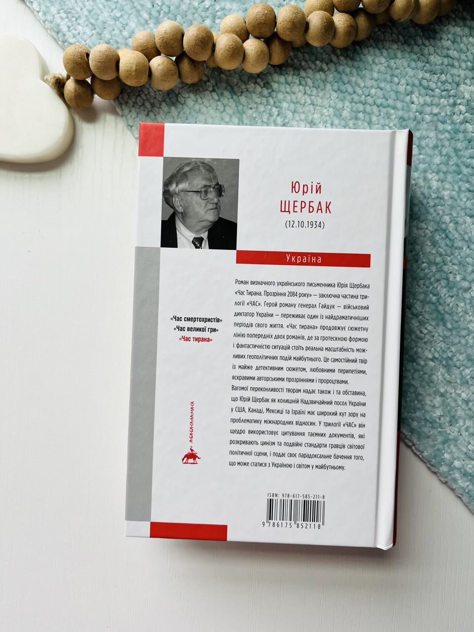 Роман визначного українського письменника Юрія Щербака «Час Тирана. Прозріння 2084 року» — заключна частина трилогії «ЧАС». Герой роману генерал Гайдук — військовий диктатор України – переживає один із найдраматичніших періодів свого життя. «Час тирана» продовжує сюжетну лінію попередніх двох романів, де за гротескною формою і фантастичністю ситуацій стоїть реальна масштабність можливих геополітичних подій майбутнього. Це самостійний твір із майже детективним сюжетом, любовними перипетіями, яскравими авторськими прозріннями і пророцтвами. Вагомої переконливості творам надає також і та обставина, що Юрій Щербак як колишній Надзвичайний посол України у США, Канаді, Мексиці та Ізраїлі має широкий кут зору на проблематику міжнародних відносин. У трилогії «ЧАС» він щедро використовує цитування таємних документів, які розкривають цинізм та подвійні стандарти гравців світової політичної сцени, і подає своє парадоксальне бачення того, що може статися з Україною і світом у майбутньому.