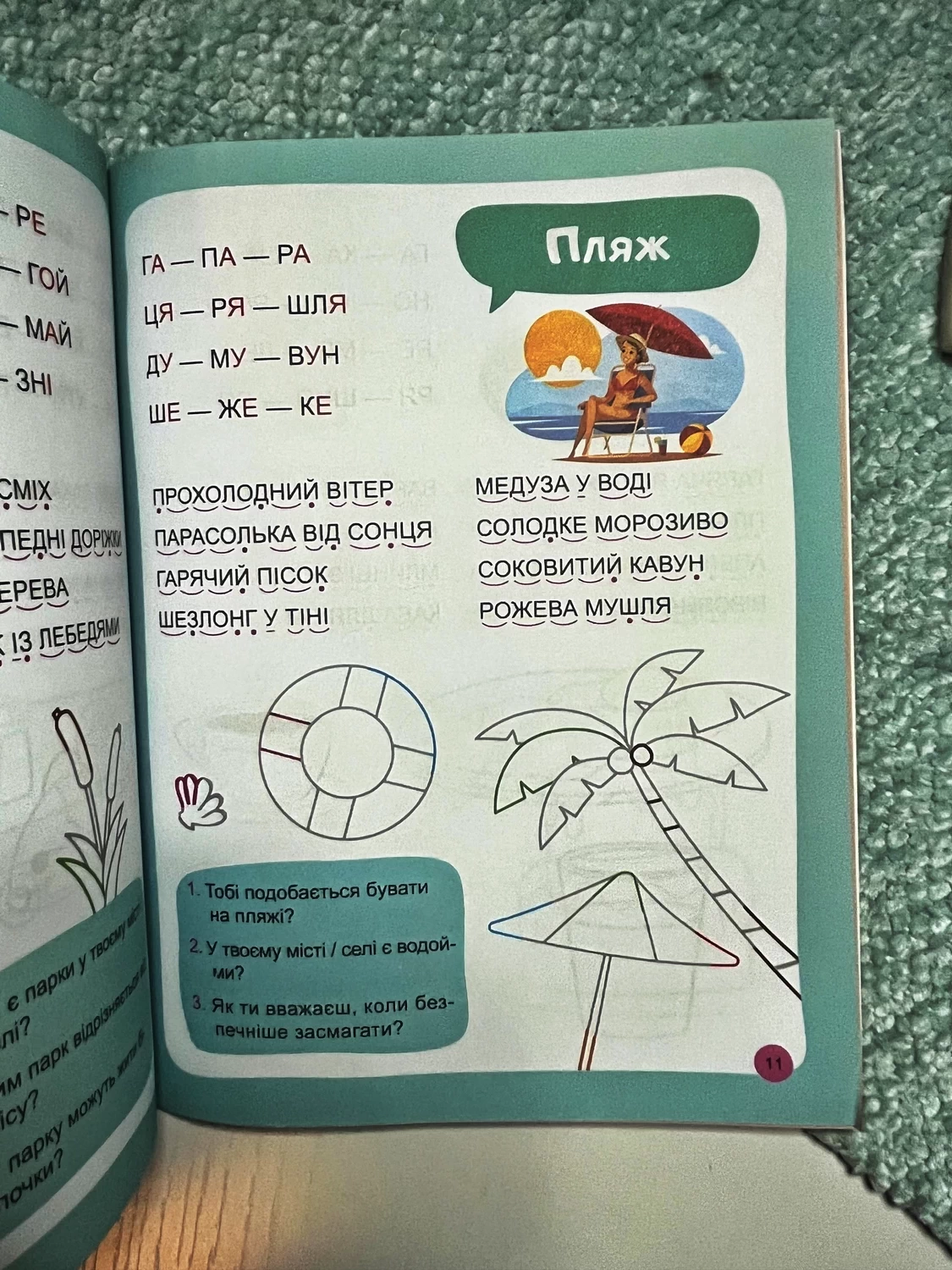 Навчання читанню та письму — цікаве та веселе заняття. Запропоновані в цій книзі завдання сформують навичку впевненого читання словосполучень. Для підготовки руки до письма на кожній сторінці надано контурні малюнки, які дитина зможе навести різнокольоровими олівцями чи фломастерами та розфарбувати. Для зручності читання усі тексти надано великими літерами зі схемами для читання.