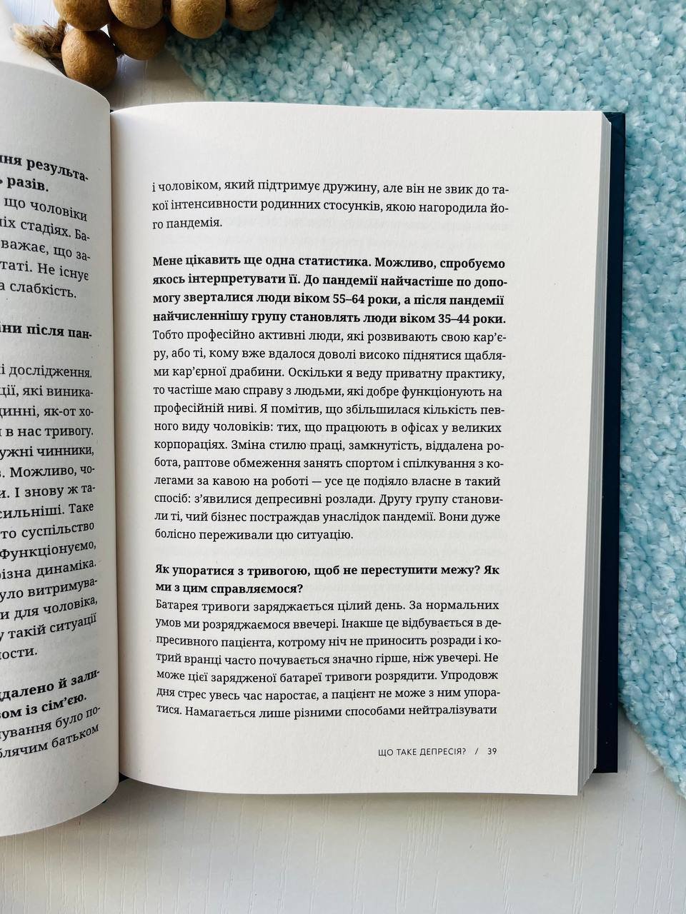 Про, можливо, найсерйознішу хворобу наших часів – як сьогодні заведено називати депресію – відверто й без кліше розмовляють Шимон Жисько, журналіст, який сам боровся з цим розладом, і проф. Кшиштоф Краєвський-Сюда, високошанований психіатр і психотерапевт. Разом вони розкривають механізми чоловічої депресії і секрети роботи, спрямованої на боротьбу з нею. Книжка буде корисною для чоловіків цивільних та військових, їхніх дружин, дітей, родичів, священників, сімейних консультатнтів, психотерапевтів, лікарів та усіх, хто працює з людьми.