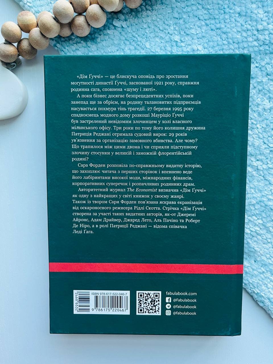 Підзаголовок документальної книжки відомої письменниці та журналістки Сари Форден говорить сам за себе — це насправді сенсаційна історія про вбивство, божевілля, розкіш та пожадливість. Авторка майстерно переплела два споріднені сюжети: драматичну історію родини Ґуччі, сповнену розбрату, судової тяганини, взаємних непорозумінь і на додаток обтяжену замовним убивством, і оповідь про злети та падіння уславленого бренду Gucci й безпрецедентні успіхи, яких врешті-решт досягнув цей видатний виробник предметів розкоші й товарів класу люкс. Сповнена справжнього драматизму, ця книжка протягом кількох років залишалася бестселером у Європі та США, і недарма італійська преса, згадуючи відомий серіал, назвала «Дім Ґуччі» «по-справжньому новою “Династією”».