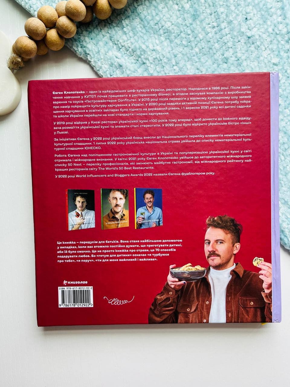 Батьки завжди радіють, коли дитина добре їсть, і засмучуються, коли апетиту немає. А може, справа зовсім не в настрої чи відсутності апетиту — можливо, дитячому меню просто не вистачає різноманітності. У цій книзі Євген Клопотенко зібрав найпопулярніші страви, які, на його думку, мають припасти до смаку вашим дітлахам. Аби привчити дитину до смачної і корисної їжі, варто долучати її до приготування, а щоб їй було цікаво, ці страви мають бути різноманітними і оригінальними. Можливо, не всі рецепти з книги у вас будуть асоціюватись з дитячим меню, але автор упевнений: найголовніше — не інгредієнти чи назва, а настрій і форма подачі страви. Тож готуйте смачне для ваших дітей разом із дітьми і насолоджуйтесь стравами за сімейним столом.«Дитячі страви. 70 простих рецептів» — передусім для батьків. Це 70 способів подарувати вашій дитині любов. Бо «готую для дитини» означає — «я турбуюся про тебе», «я поруч», «ти для мене важливий і важлива».Це — практичне видання, що стане помічником для батьків у приготуванні страв для дітей із простих та доступних продуктів швидко, смачно та корисно. Навчить, як подарувати турботу дітям, сформувати гарний смак до правильного та здорового харчування, відкрити різноманіття страв та смаків, а також долучити своїх дітей до спільного готування страви, створення сімейних традицій, щоб дитина, згадуючи своє дитинство, змогла передати ці рецепти своїм дітям.У книжці рецепти поділено на сім розділів: «Сніданки», «Салати», «Перші страви», «Другі страви», «Випічка і десерти», «Перекуси» та «Напої». Кожен розділ доповнений інтерв’ю батьків — команда проєкту Євгена Клопотенка та видавництва #книголав, які розповідають про те, як харчуються їхні діти, а також діти називають свої улюблені страви та вподобання.Це практичні рецепти, які — я переконаний — сподобаються дітям. Я врахував їхні базові вподобання й поміркував, як зможу це розширити, щоб ваша дитина знайомилася з новими смаками й способами приготування та розвивалася через це. Щоб її світ був простим, смачним і без меж. Тому ця книжка стане вашим другом, вашою найбільшою допомогою у випадках, коли вас (чесно) втомило постійно думати, що приготувати дитині, аби їй було смачно….Їжа, яку готують батьки дітям, — це дуже про стосунки. Дитина виросте й пам’ятатиме, як на вихідних їй готували млинці зі смородиною. Вона любитиме цей спогад, житиме ним і передасть його вже своїм дітям. Ось таку силу має їжа. — Євген Клопотенко