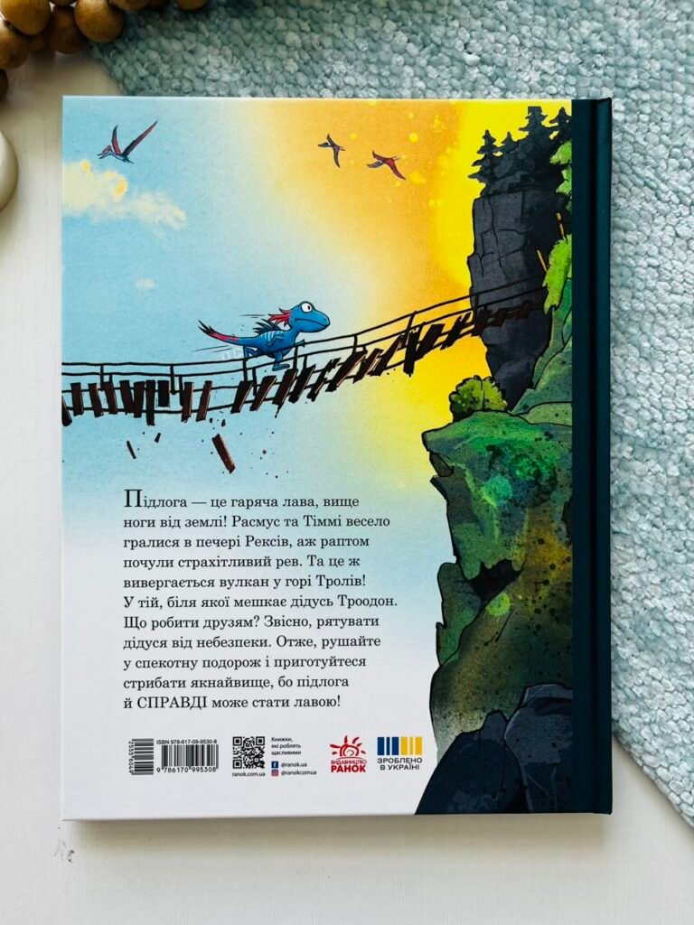 Агов, підлога — це лава, вище ноги від землі! Расмус та Тіммі весело гралися в печері Рексів, аж раптом почули страхітливий рев. Та це ж вивергається вулкан у горі Тролів! У горі, біля якої мешкає дідусь Троодон. Що робити друзям? Звісно, рятувати старенького від небезпеки.Отже, чекайте на спекотну подорож і приготуйтеся стрибати якнайвище, бо підлога й СПРАВДІ може стати лавою!