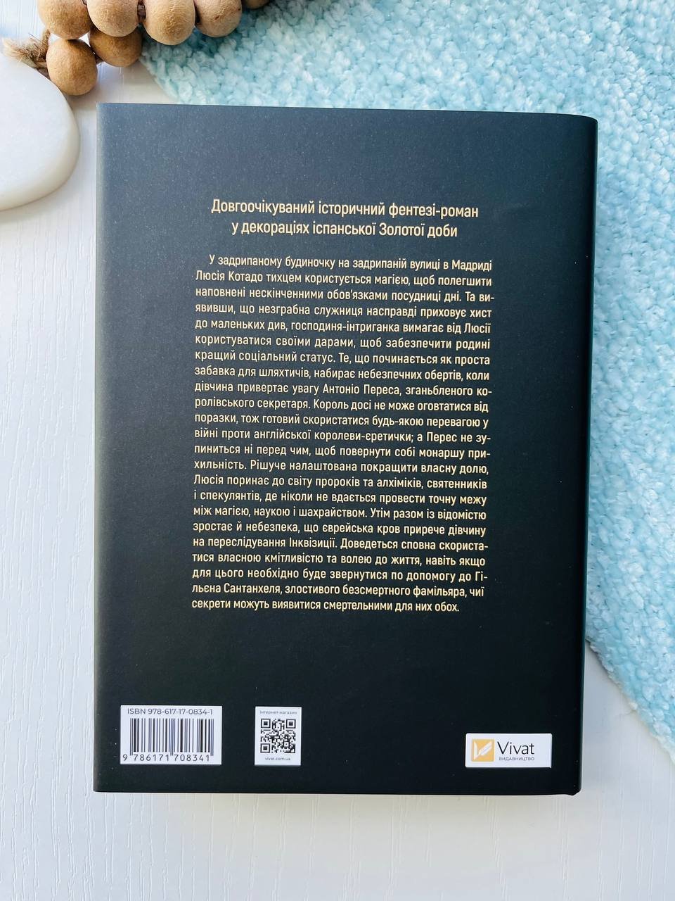 Рішуче налаштована покращити власну долю, Люсія поринає до світу пророків та алхіміків, святенників і спекулянтів, де ніколи не вдається провести точну межу між магією, наукою і шахрайством. Утім разом із відомістю зростає й небезпека, що єврейська кров прирече дівчину на переслідування Інквізиції. Доведеться сповна скористатися власною кмітливістю та волею до життя, навіть якщо для цього необхідно буде звернутися по допомогу до Гільєна Сантанхеля, злостивого безсмертного фамільяра, чиї секрети можуть виявитися смертельними для них обох.