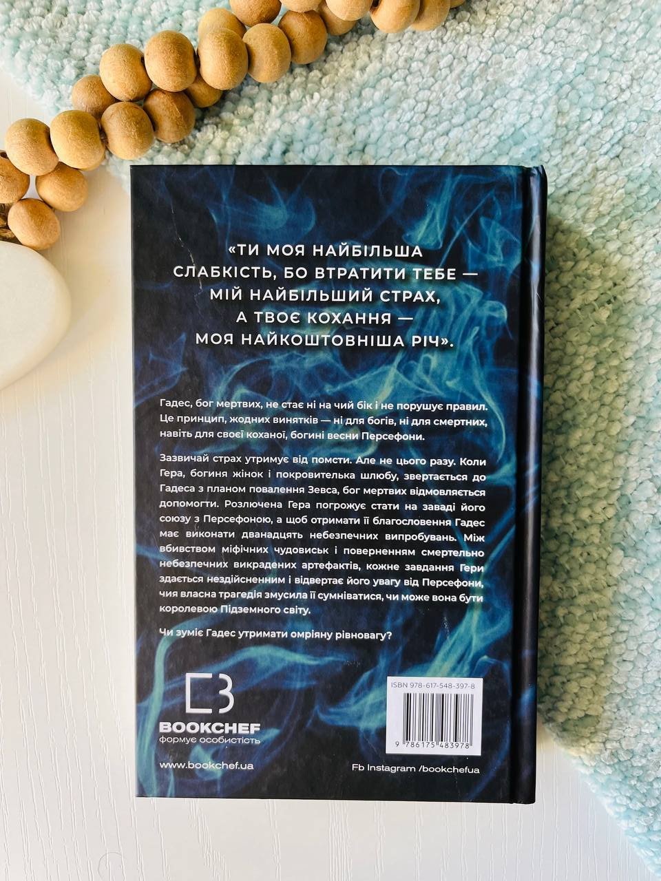 Гадес, бог мертвих, не стає ні на чий бік і не порушує правил. Це принцип: жодних винятків — ні для богів, ні для смертних, навіть для своєї коханої, богині весни Персефони. Зазвичай страх утримує від помсти. Але не цього разу. Коли Гера, богиня жінок і покровителька шлюбу звертається до Гадеса з планом повалення Зевса, бог мертвих відмовляється допомогти. Розлючена Гера погрожує стати на заваді його союзу з Персефоною, а щоб отримати її благословення Гадес має виконати дванадцять небезпечних випробувань. Між вбивством міфічних чудовиськ і поверненням смертельно небезпечних викрадених артефактів, кожне завдання Гери здається нездійсненним і відвертає його увагу від Персефони, чия власна трагедія змусила її сумніватися, чи може вона бути королевою Підземного світу. Чи зуміє Гадес утримати омріяну рівновагу?Гадес