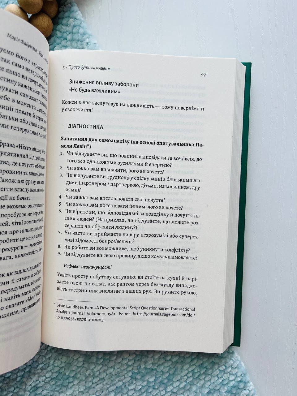 Чи ви помічали як часто думаєте «не судилося», «це просто прокляття» чи «мені ніколи не вдасться»? Спираючись на теорії транзакційного аналізу й багаторічний професійний досвід, психотерапевтка Марія Фабрічева пояснює, що такі думки швидше за все зумовлені життєвим сценарієм і психологічними заборонами, засвоєними ще в ранньому дитинстві. Також авторка демонструє, як історичні події XX століття, зокрема сталінський терор, вплинули на формування цих заборон на культуральному рівні, аналізує, як ці заборони вплинули на систему виховання та соціальні норми та досі обмежують наше мислення і поведінку.