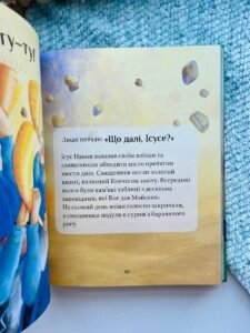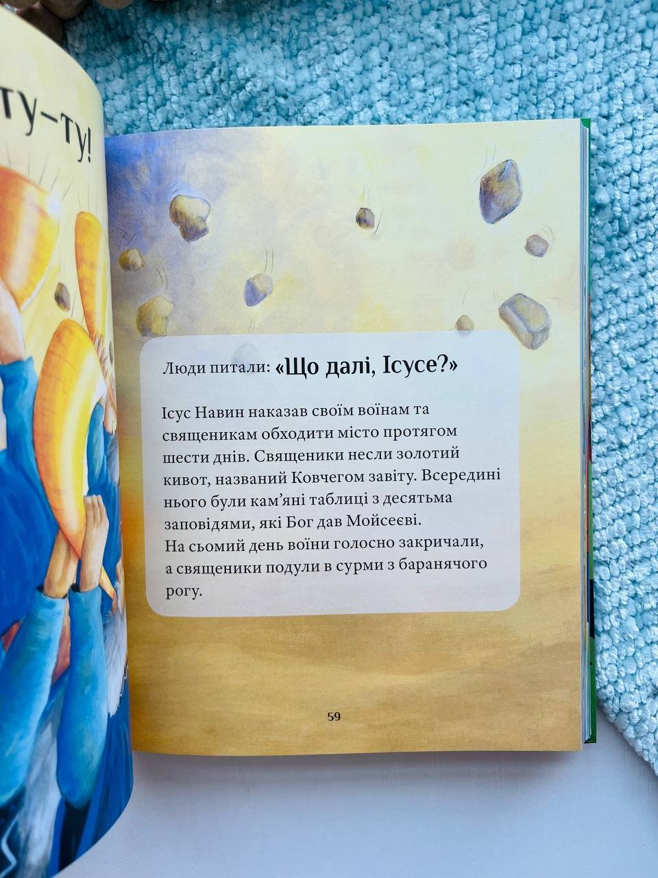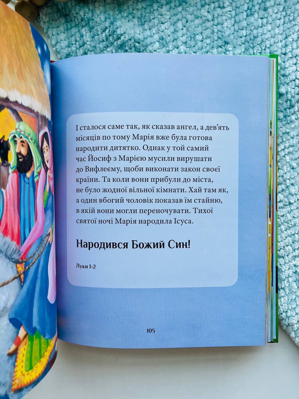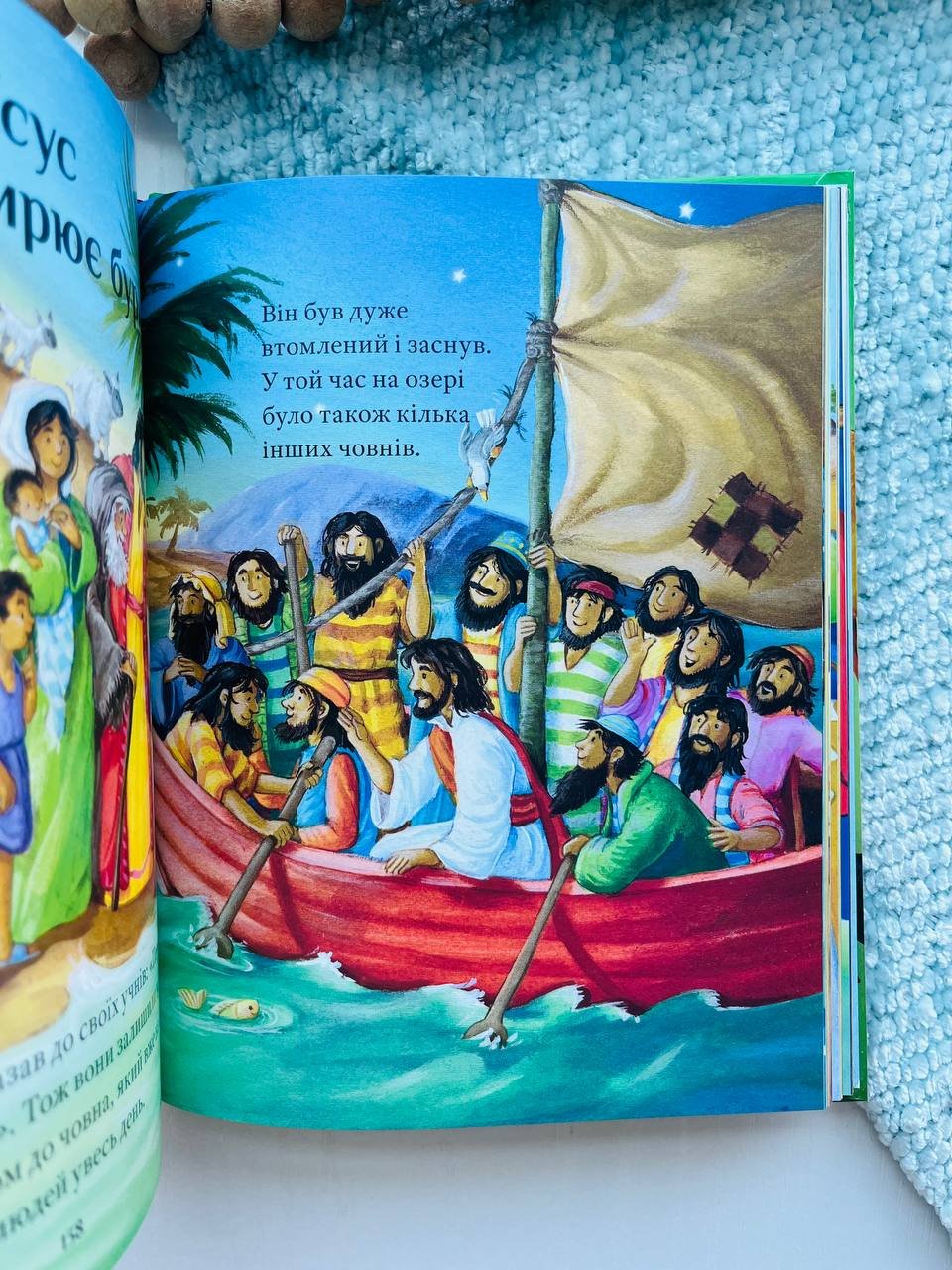Діти захоплено розглядатимуть пізнавальні ілюстрації і дізнаватимуться про створення світу, маленького Мойсея в кошику, Йону та велику рибу, народження Ісуса в бідній стаєнці та багато інших цікавих історій.