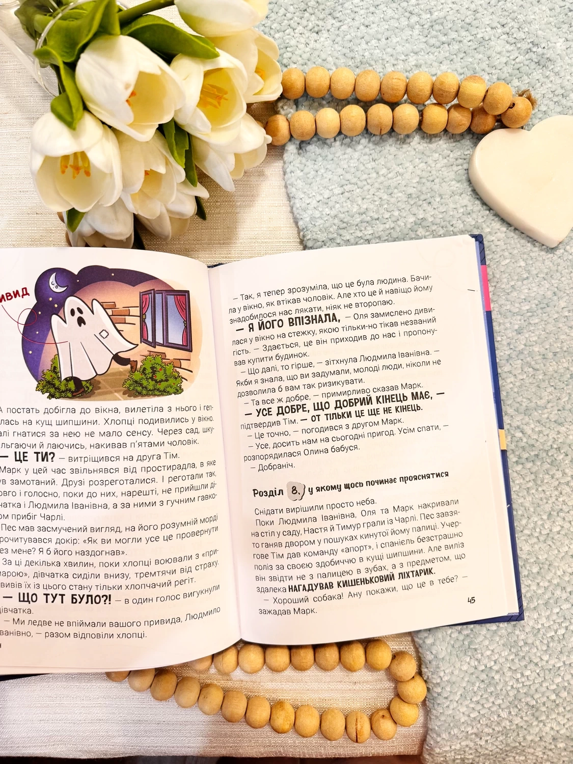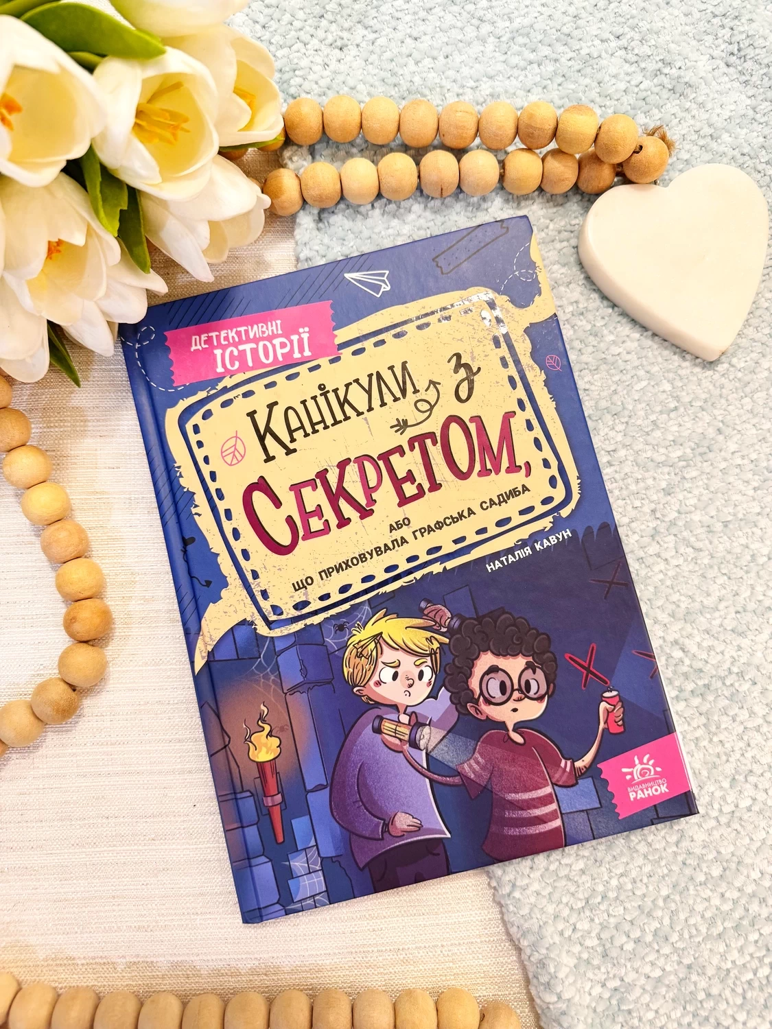 “Канікули з секретом” — це детективна історія про трьох друзів, які вирушають на канікули в село і потрапляють у центр таємничих подій. Вони знаходять старовинну садибу, де розгадують загадки минулого, полюють на привидів і намагаються розкрити секрети таємничого злочинця. Сюжет містить інтерактивні елементи, стильні ілюстрації та цікаві герої, що робить книгу захоплюючою для дітей, які люблять детективи і містичні історії.