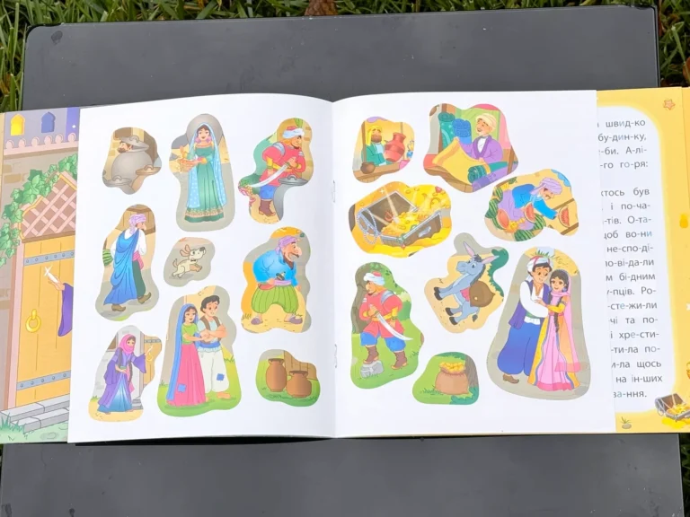 Що може бути цікавішим за класичну казку «Алі-Баба і сорок розбійників», яку люблять покоління? Тільки її сучасна інтерпретація! Ця книжка поєднує захопливий сюжет із інтерактивними елементами: безліч наліпок, тематичний лабіринт і навіть 2D-іграшка, які додають пригодам ще більше веселощів. Особливістю видання є поділ слів на склади, що робить читання простішим і допомагає дітям швидше освоїти цей важливий етап навчання.