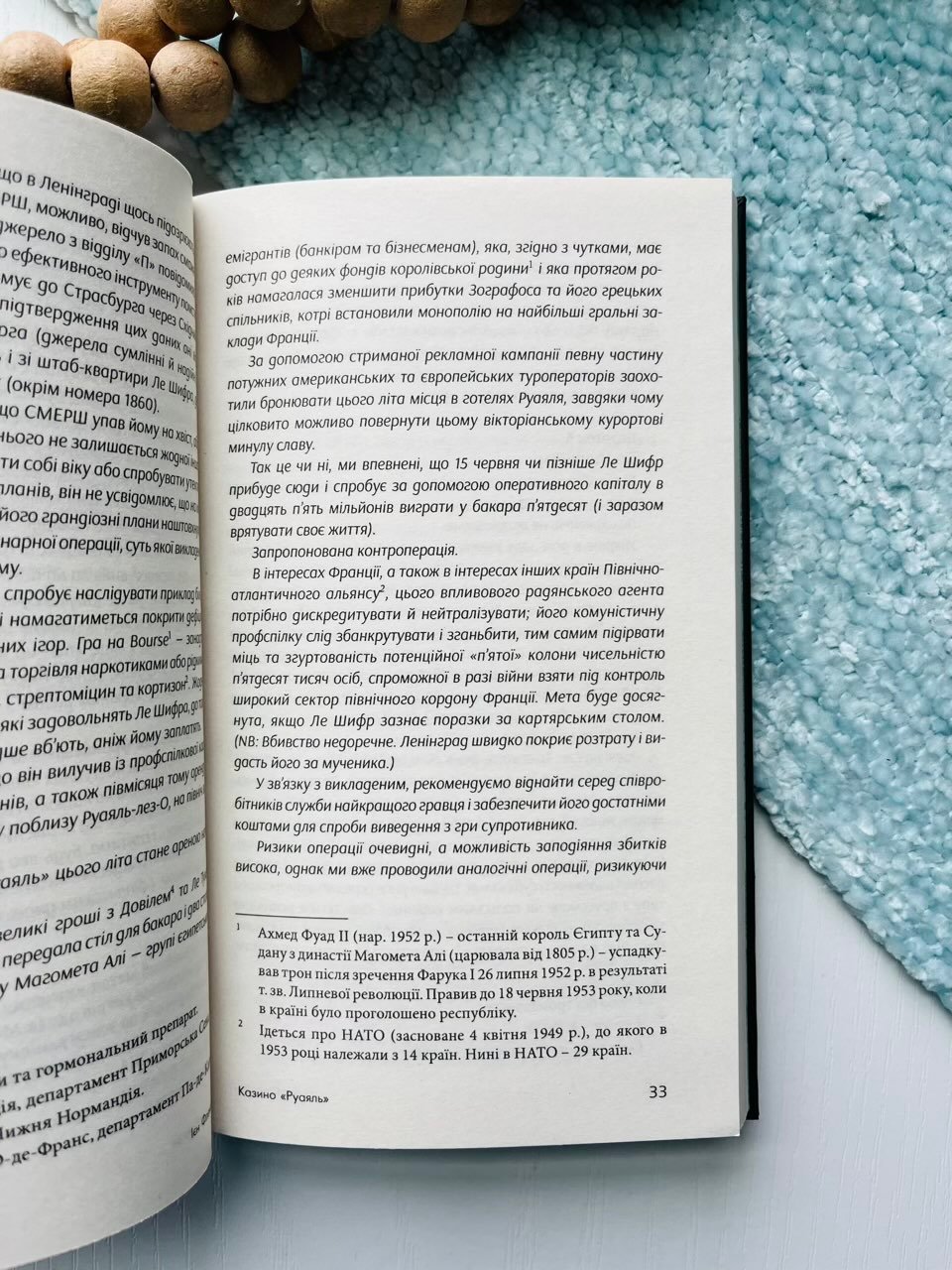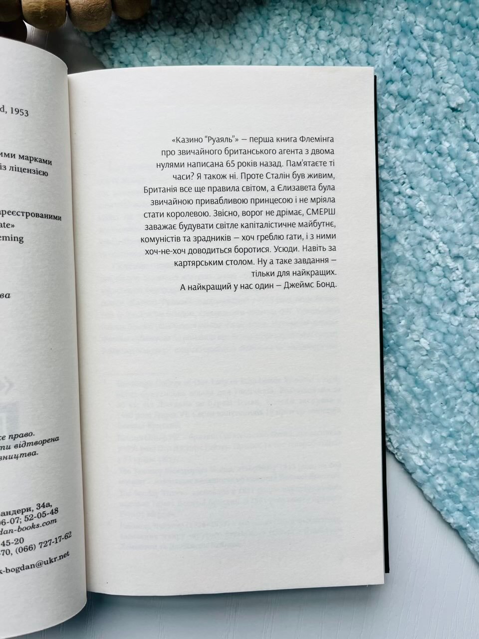 «Казино “Руаяль”» — перша книга Флемінга про звичайного британського агента з двома нулями написана 65 років назад. Пам’ятаєте ті часи? Я також ні. Проте Сталін був живим, Британія все ще правила світом, а Єлизавета була звичайною привабливою принцесою і не мріяла стати королевою. Звісно, ворог не дрімає, СМЕРШ заважає будувати світле капіталістичне майбутнє, комуністів та зрадників — хоч греблю гати, і з ними хоч-не-хоч доводиться боротися. Усюди. Навіть за картярським столом. Ну а таке завдання — тільки для найкращих.