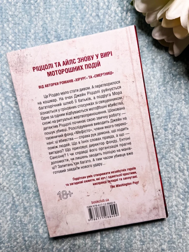 Це Різдво мало стати дивом. А перетворилося на кошмар. На очах Джейн Ріццолі руйнується багаторічний шлюб її батьків, а подруга Мора зізнається у гріховних стосунках зі священником. Одне за одним відбуваються моторошні вбивства, схожі на ритуальні жертвоприношення. Шокована детектив Ріццолі починає свою звичну роботу: пошук убивці. Розслідування виводить Джейн на таємничий фонд «Мефісто», члени якого переконані: ці вбивства — справа рук демона, що ходить поміж людей. Що в їхніх словах правда, а що — вигадка? Що приховує директор фонду, Ентоні Сансоне? І чи справді його організація прагне допомогти, чи лишень зводить поліцію на манівці? Запитань так багато. А тим часом убивця вже готовий завдати нового удару…
