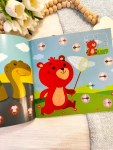 Це серія книг-ігор з наклейками, розроблена для дітей віком від 3 до 5 років. Кожна книга містить 10 сторінок із завданнями та понад 70 кольорових наклейок, що сприяють розвитку логічного мислення, уважності та дрібної моторики у малюків.