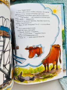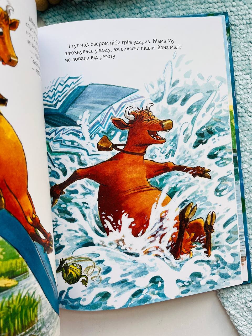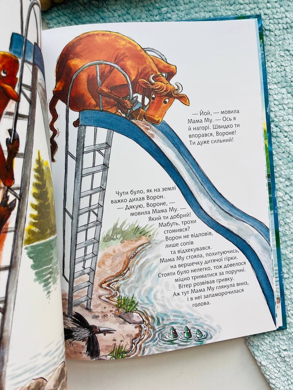 — КРА-А! Однак вона для дітей, Мамо Му. Діти завжди тут купаються. Діти люблять спускатися з гірки. Через те її тут і поставили. А не тому, що на луці пасуться корови. Зрозумій же ти це!