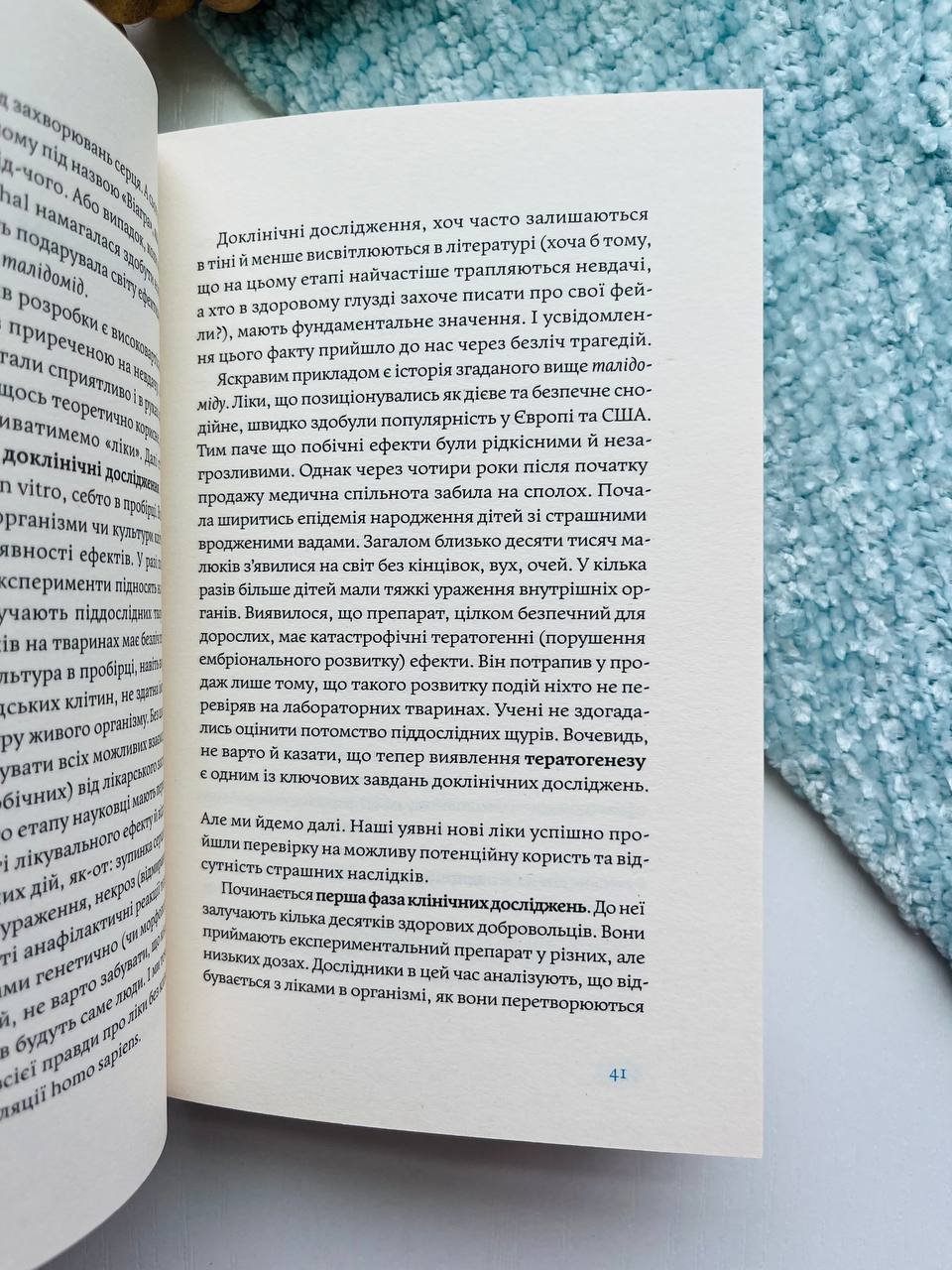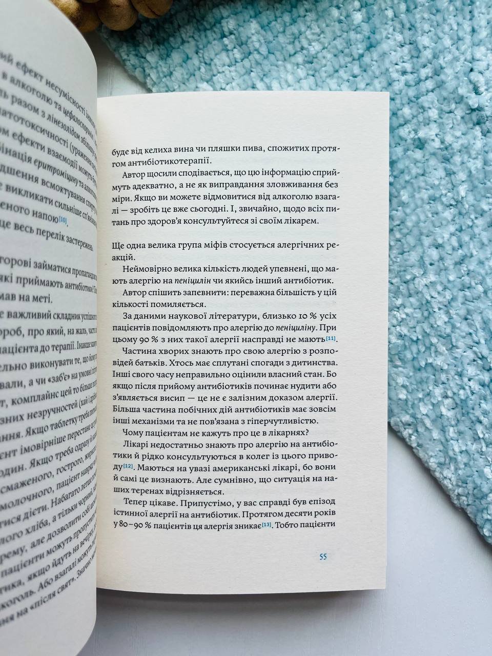 Чому бактерії на підлозі лікарні небезпечніші за ті, що живуть у вашій кухні? Як поширюються антивакцинаторські міфи, і навіщо королеві гомеопат? Чому антибіотики зазвичай можна поєднувати з алкоголем (і до чого тут пиво, гонорея і сифіліс)? Що насправді роблять оксолінова мазь і гематоген та чи варто обклеювати своє тіло тейпами? А також про фітотерапію, інгаляції з вареної картоплі, дієти, уколи, пуповинну кров та інші прогресивні (насправді не дуже) методики розповідає автор книжки, пояснюючи водночас, як критично аналізувати медичну інформацію.