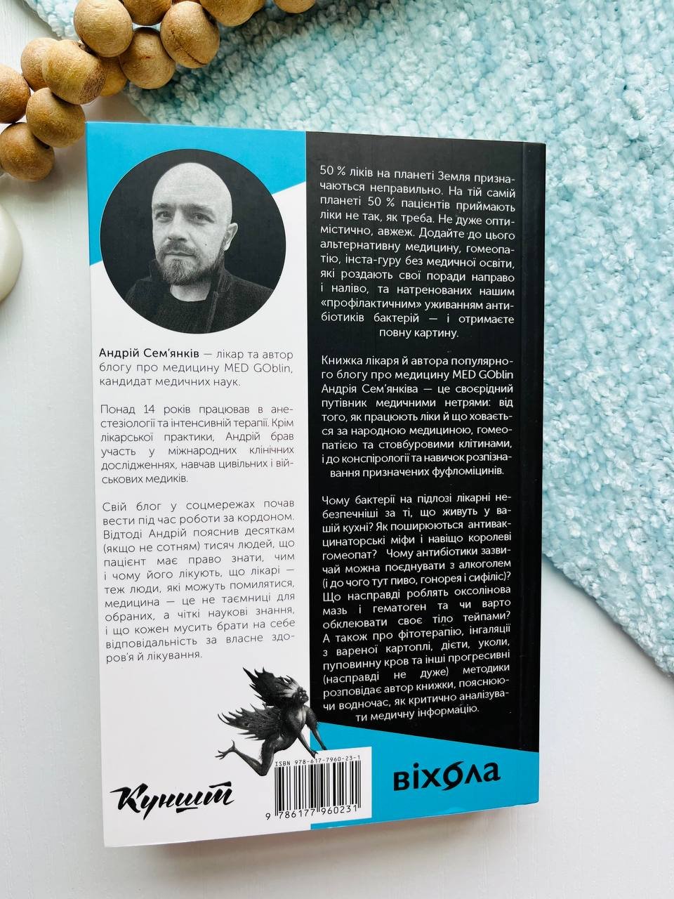 Книжка лікаря й автора популярного блогу про медицину MED GOblin Андрія Сем’янківа — це своєрідний путівник медичними нетрями: від того, як працюють ліки й що ховається за народною медициною, гомеопатією та стовбуровими клітинами, і до конспірології та навичок розпізнавання призначених фуфломіцинів.