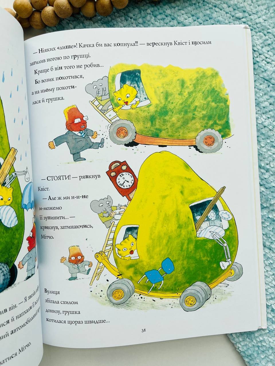 Одного разу сонячним днем друзі Мітчо і Себастіан отримують лист від зниклого бургомістра свого маленького, але дуже симпатичного Міста Сонця. А разом з листом — загадкове зернятко, з якого за ніч виростає… велетенська грушка!