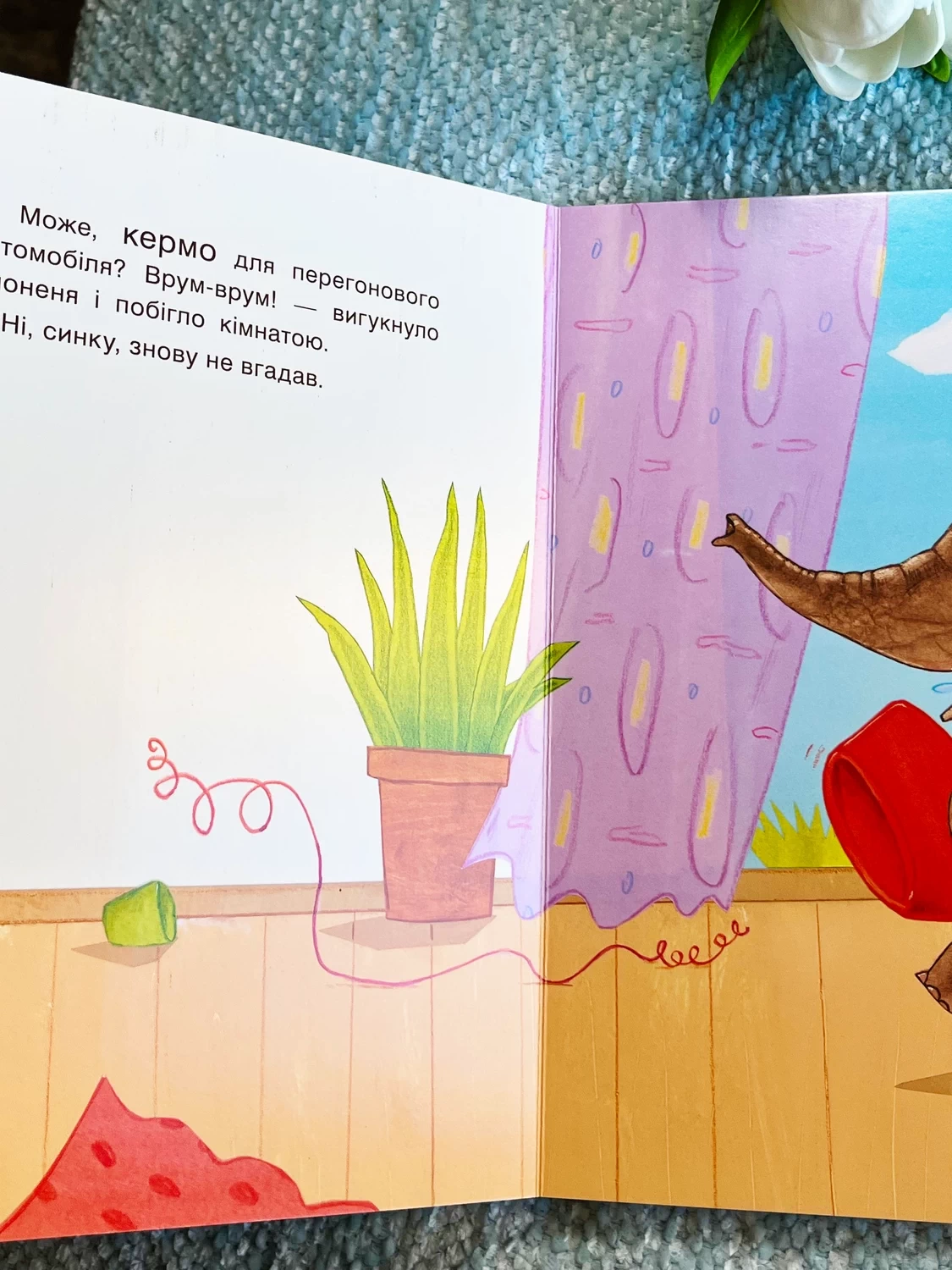 Ілюстрації: Милий та яскравий стиль ілюстрацій підкреслює теплоту та кумедність ситуації.