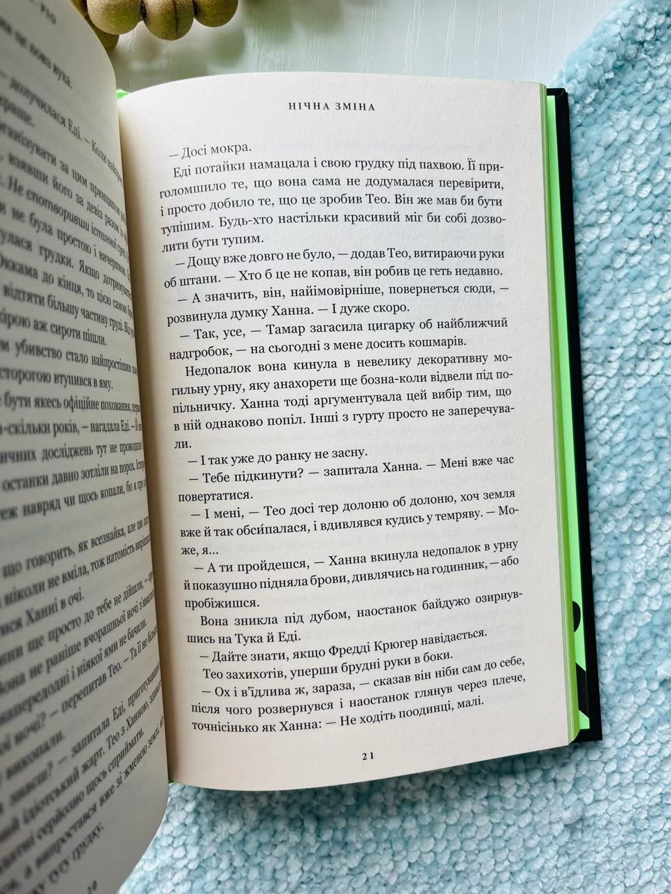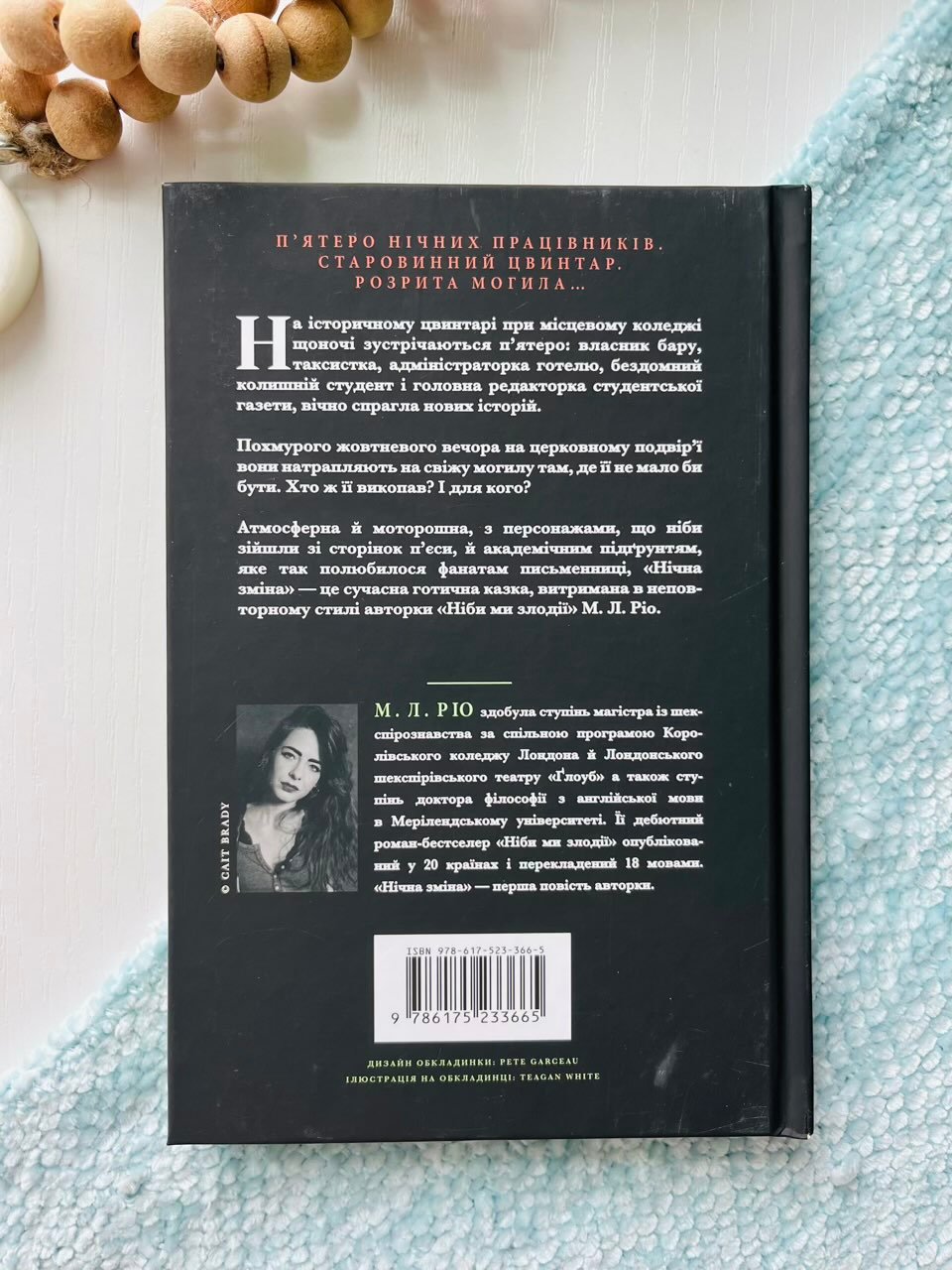 Атмосферна й моторошна, з персонажами, що ніби зійшли зі сторінок п’єси, й академічним підґрунтям, яке так полюбилося фанатам письменниці, «Нічна зміна» — це сучасна готична казка, витримана в неповторному стилі авторки «Ніби ми злодії» М. Л. Ріо.