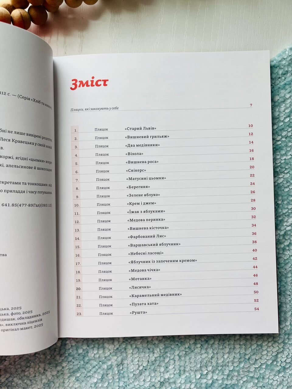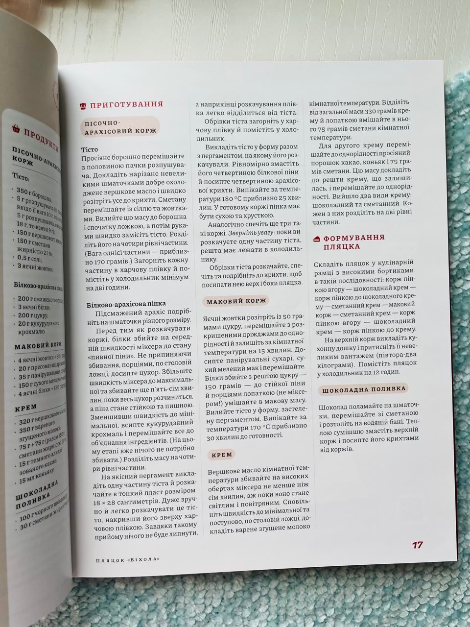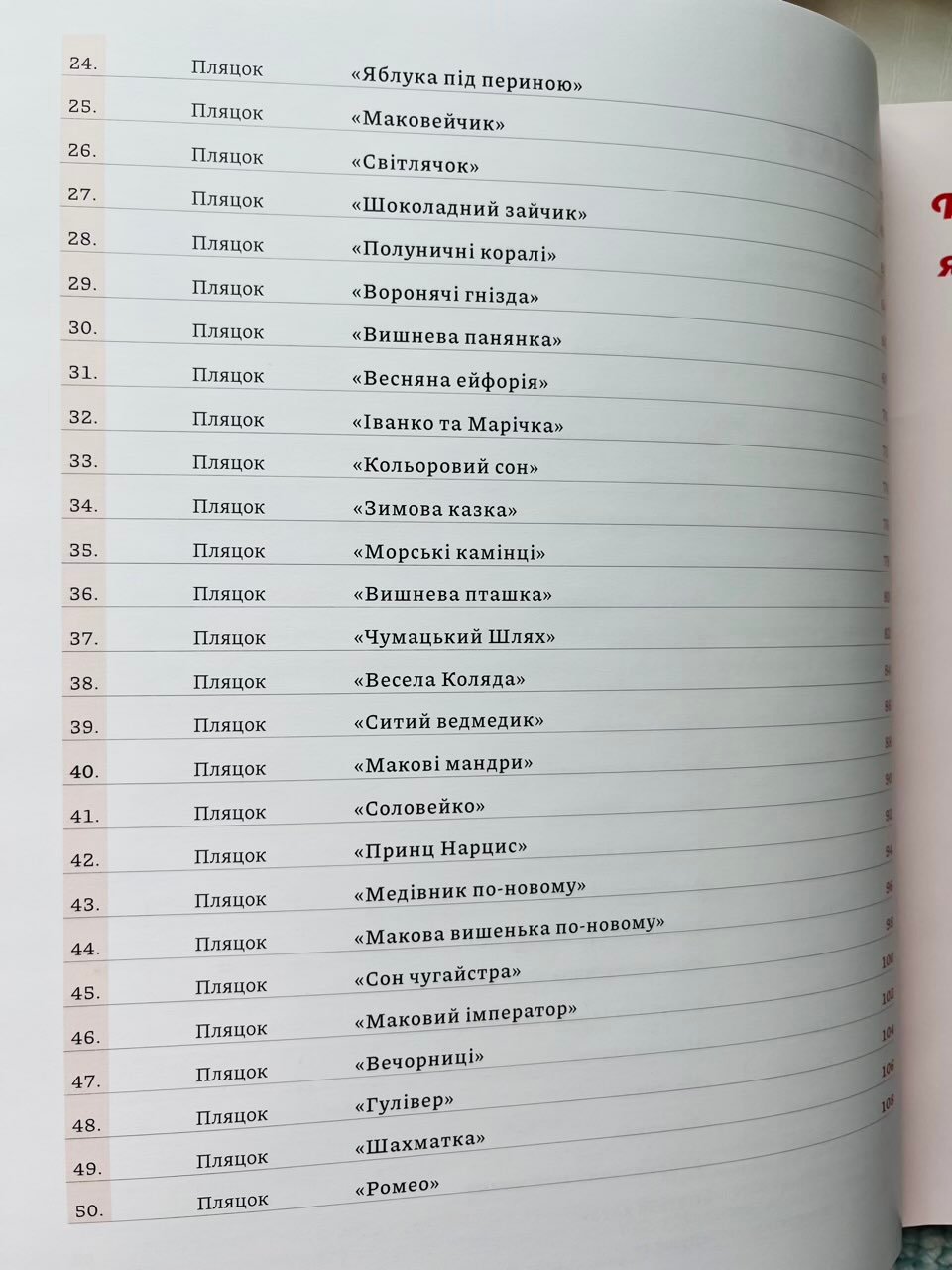 Вишнева роса, яка проступає на поверхні пляцка, хрумкі горіхові коржі, ягідні «цьомки» всередині найніжнішого сирника, маково-кокосова пінка, смарагдові коржі, апельсинове й шоколадне тісто, що разом нагадують зоряне небо.