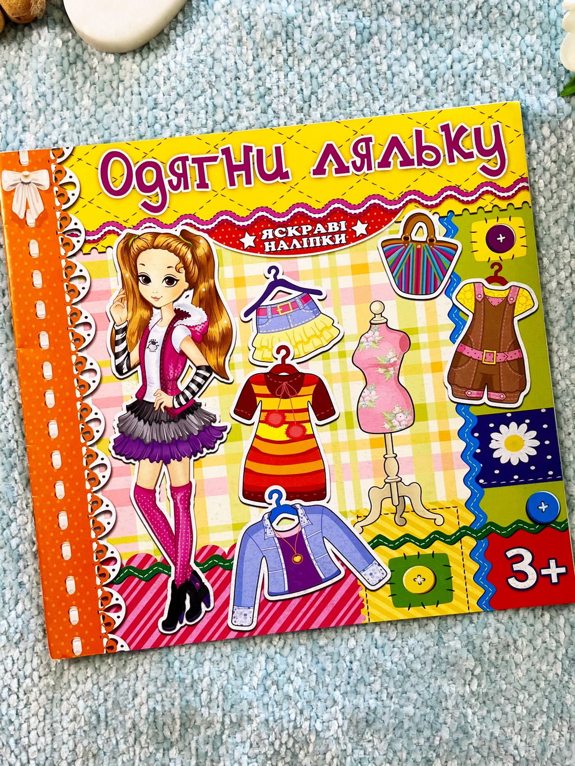 Яскраві наліпки: кожна книга містить різноманітні наліпки з одягом та аксесуарами для ляльок, які можна комбінувати та прикріплювати на ляльки, створюючи унікальні образи.