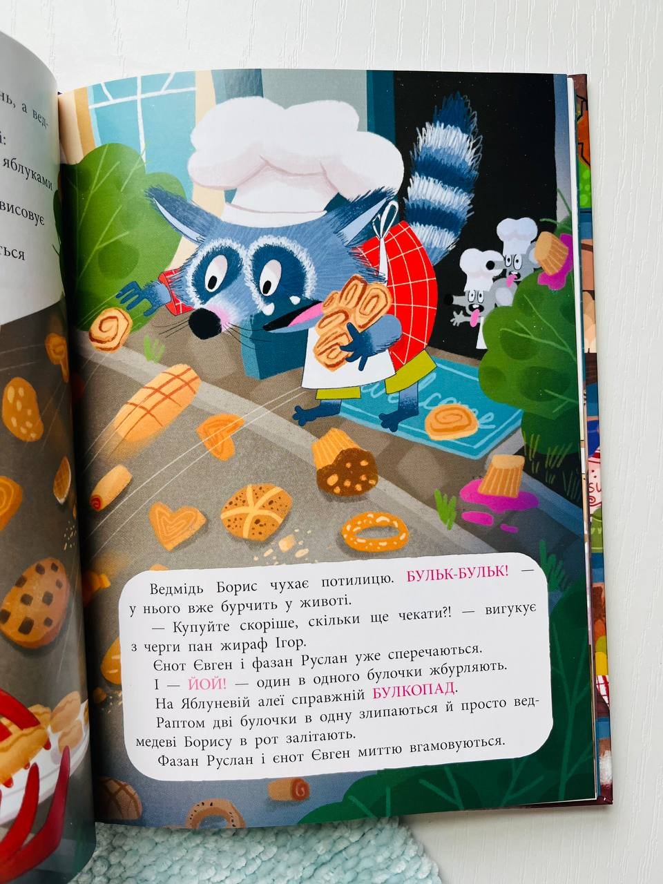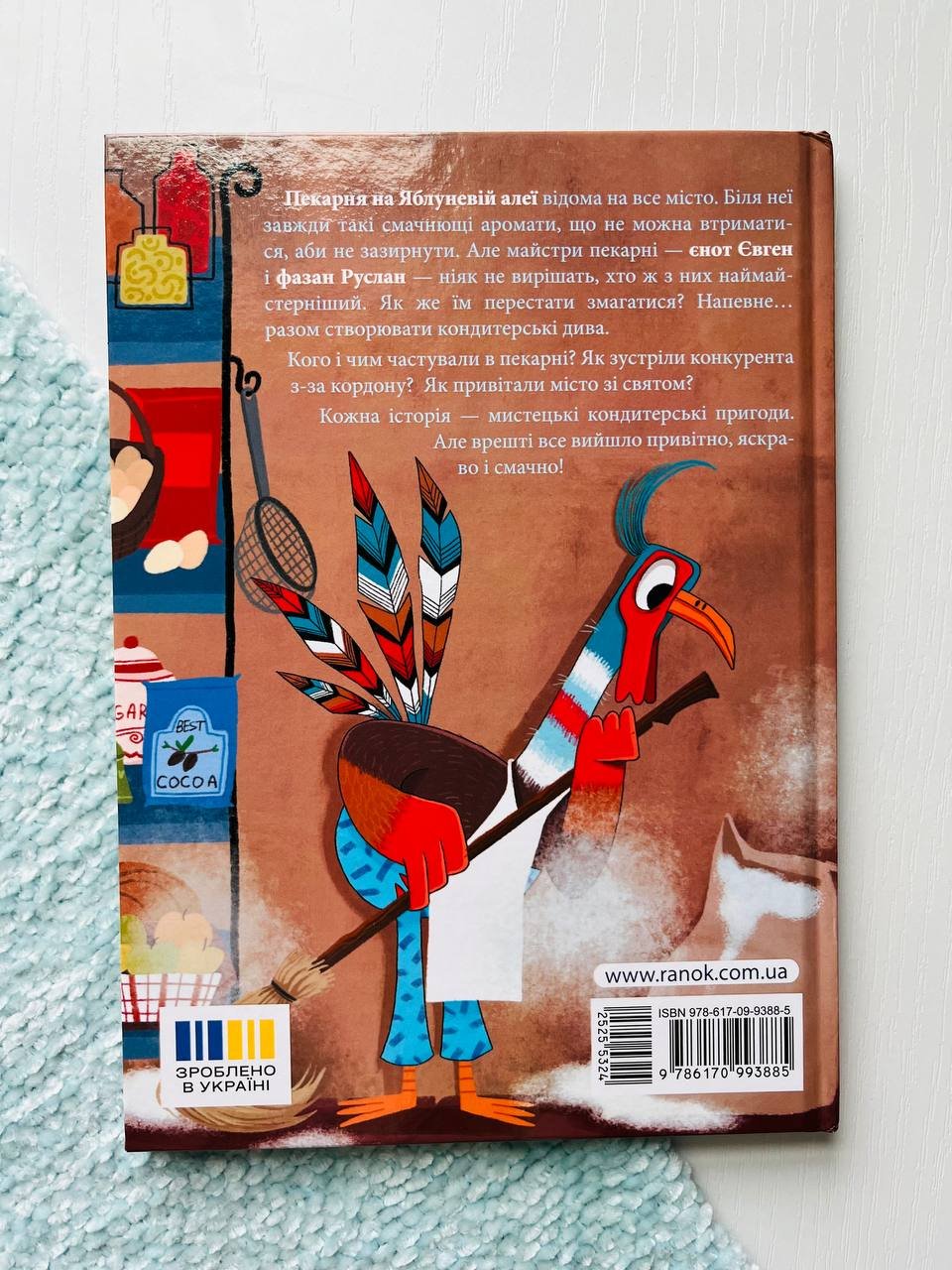 Пекарня на Яблуневій алеї відома на все місто. Біля неї завжди такі смачнющі аромати, що не можна втриматися, аби не зазирнути. Але майстри пекарні — єнот Євген чи фазан Руслан — ніяк не вирішать, хто ж них наймайстерніший. Як же їм перестати змагатися? Напевне… разом створювати кондитерські дива. Кого і чим частували в Пекарні? Як зустріли конкурента з-за кордону? Як привітали місто зі святом? Кожна історія — мистецькі кондитерські пригоди. Але врешті все вийшло привітно, яскраво і смачно!
