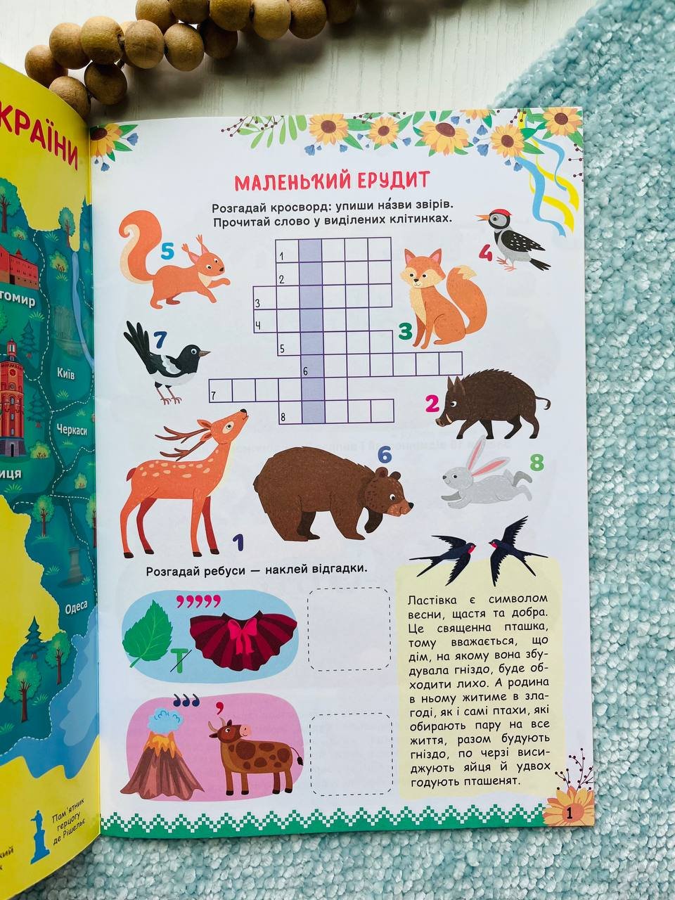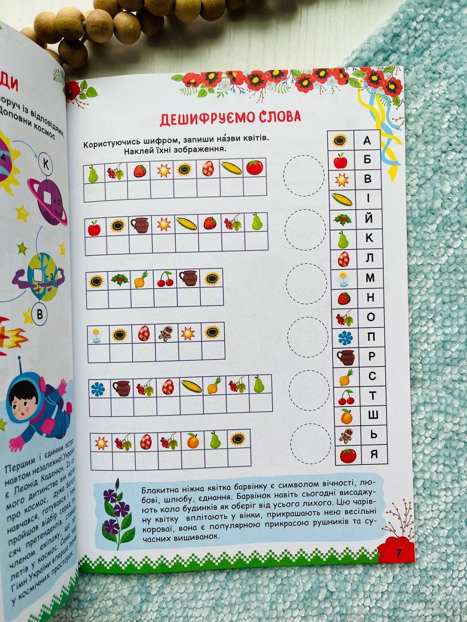 Любов до Батьківщини, як і до родини, з’являється і виховується змалечку. Захоплення красою рідної землі, насолода від милозвучності мови, повага до символів і пам’яток, турбота про ближнього, гордість за українське проростають з усвідомленням себе частинкою країни. Ця книжка допоможе в цьому й відкриє цікаві горизонти пізнання, запропонує незвичні завдання на українську тематику, розраховані на дітей від 6 років, — кросворди, загадки, ребуси, шифрограми, судоку, розмальовку, лабіринт, завдання для розвитку уваги, покращання дикції та тренування пам’яті.Видання призначене для дітей старшого дошкільного й молодшого шкільного віку.
