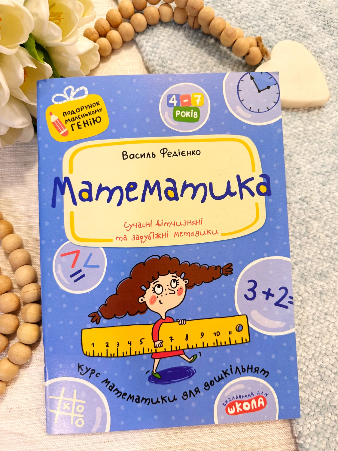 Посібник «Математика. Курс математики для дошкільнят» Василя Федієнка створений для того, щоб у доступній та ігровій формі ознайомити малюка з базовими математичними поняттями.