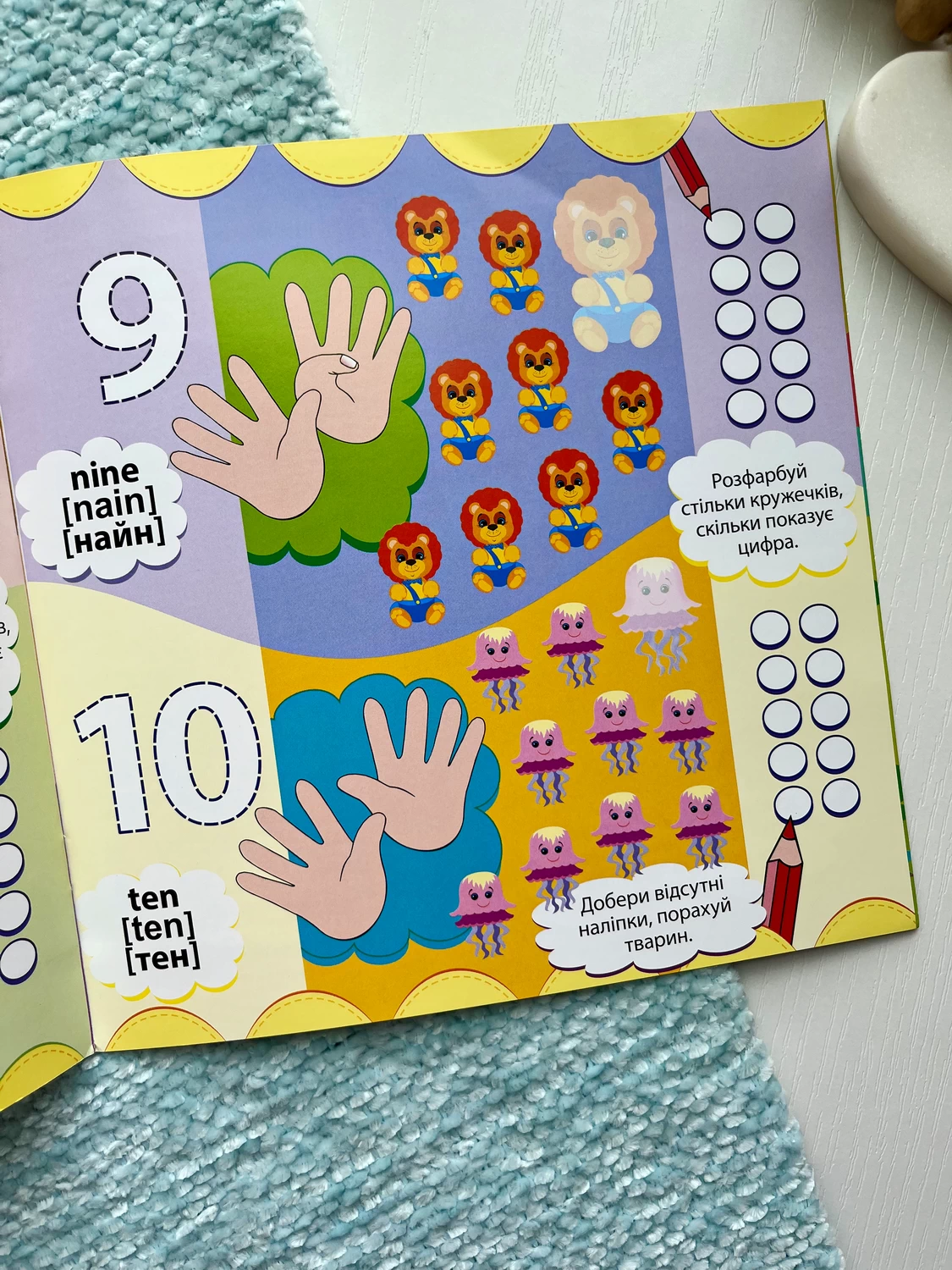 Пропонуємо вам цікаву книжку «English для малят» із розвивальної серії «Пограймося!». Адже іноземну мову теж вивчати доцільно під час гри. І що раніше починати, то краще! Не переймайтеся, якщо ваша дитина відмовляється вчити англійські слова саме зараз. Усі діти розвиваються індивідуально, тож вам просто доведеться трохи почекати. Наберіться терпіння — і ця книжка допоможе малюку вивчити англійський алфавіт, назви деяких тварин і цифри англійською та опанувати правильну вимову. За допомогою наліпок з буквами, тваринами і цифрами дитина легко подолає перший етап навчання. Цікаві завдання допоможуть їй навчитися рахувати й розвинуть увагу та кмітливість.