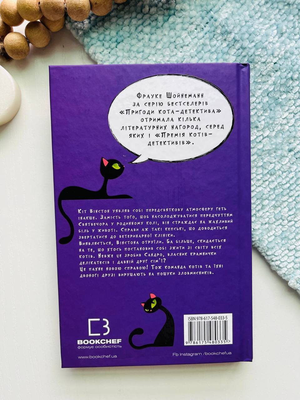 Кіт Вінстон уявляв собі передсвяткову атмосферу геть інакше. Замість того, щоб насолоджуватися передчуттям Святвечора у родинному колі, він страждає на жахливий біль у животі. Справи аж такі кепські, що доводиться звертатися до ветеринарної клініки. Виявляється, Вінстона отруїли. Ба більше, скидається на те, що хтось постановив собі зжити зі світу всіх котів. Невже це зробив Сандро, власник крамнички делікатесів і давній друг сім’ї? Це пахне новою справою! Тож команда котів та їхні двоногі друзі вирушають на пошуки зловмисників.