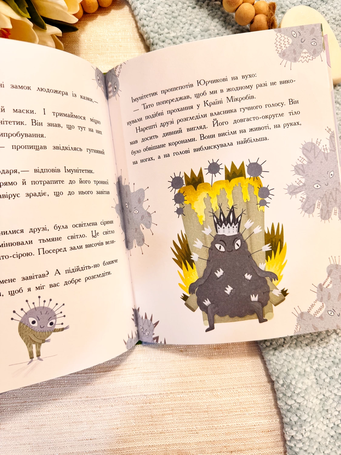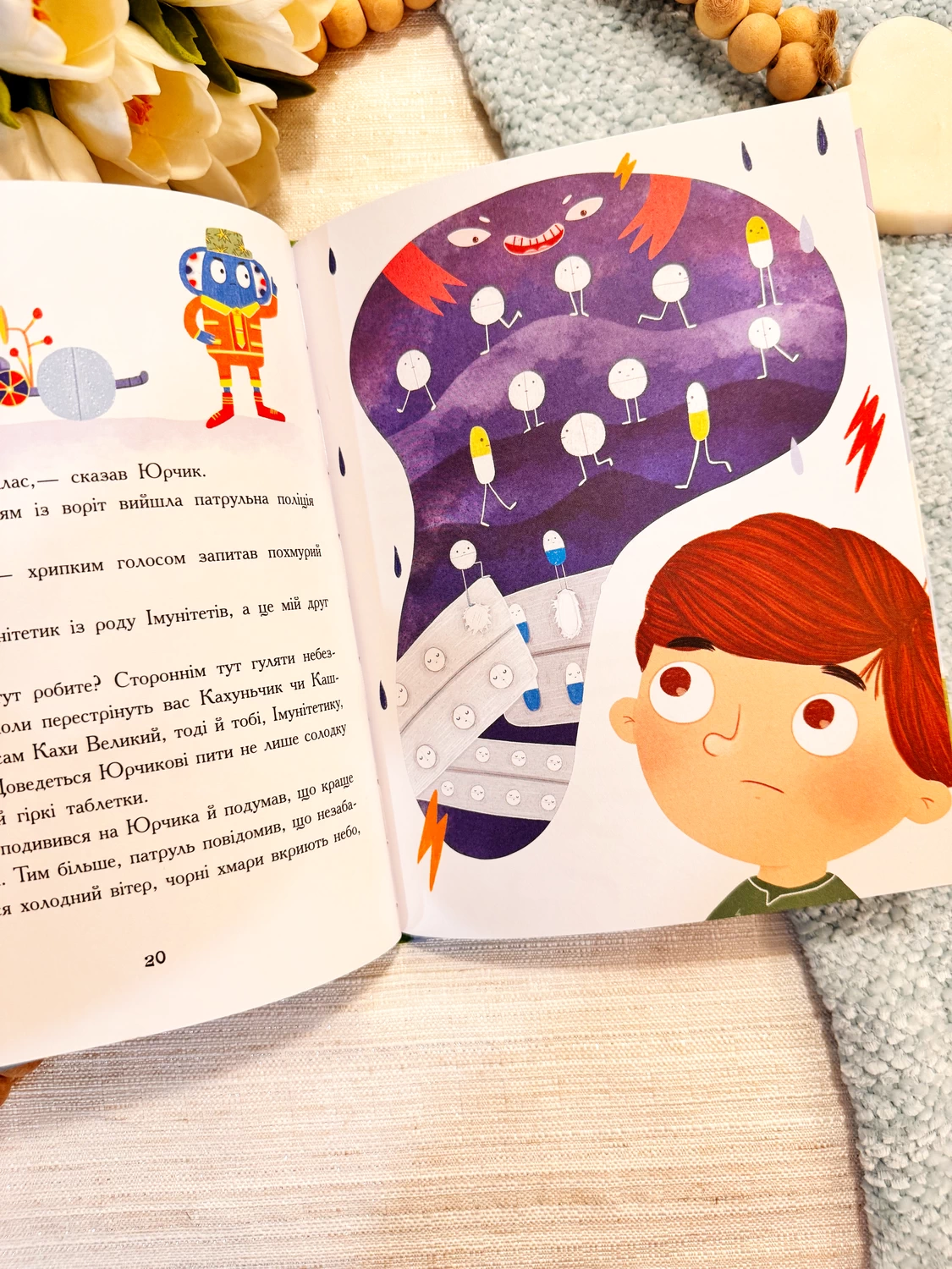 Жив собі хлопчик Юрчик, який допомагав доглядати братика, складав конструктор з татом і любив тихцем дивитися мультики на планшеті. Але одного дня, уявіть собі, він несподівано опинився в Країні Мікробів! Разом із новим другом Імунітетиком хлопчик на власні очі побачить мешканців цієї незвичайної країни: апчихуньчиків, кахунчиків, фей діареї та лихого Коронавіруса. Чи вдасться друзям повернутися додому здоровими? Як можна запобігти хворобам, зберегти здоров’я й зміцнити імунітет? Відповіді на ці та інші питання чекають на вас у книжці!