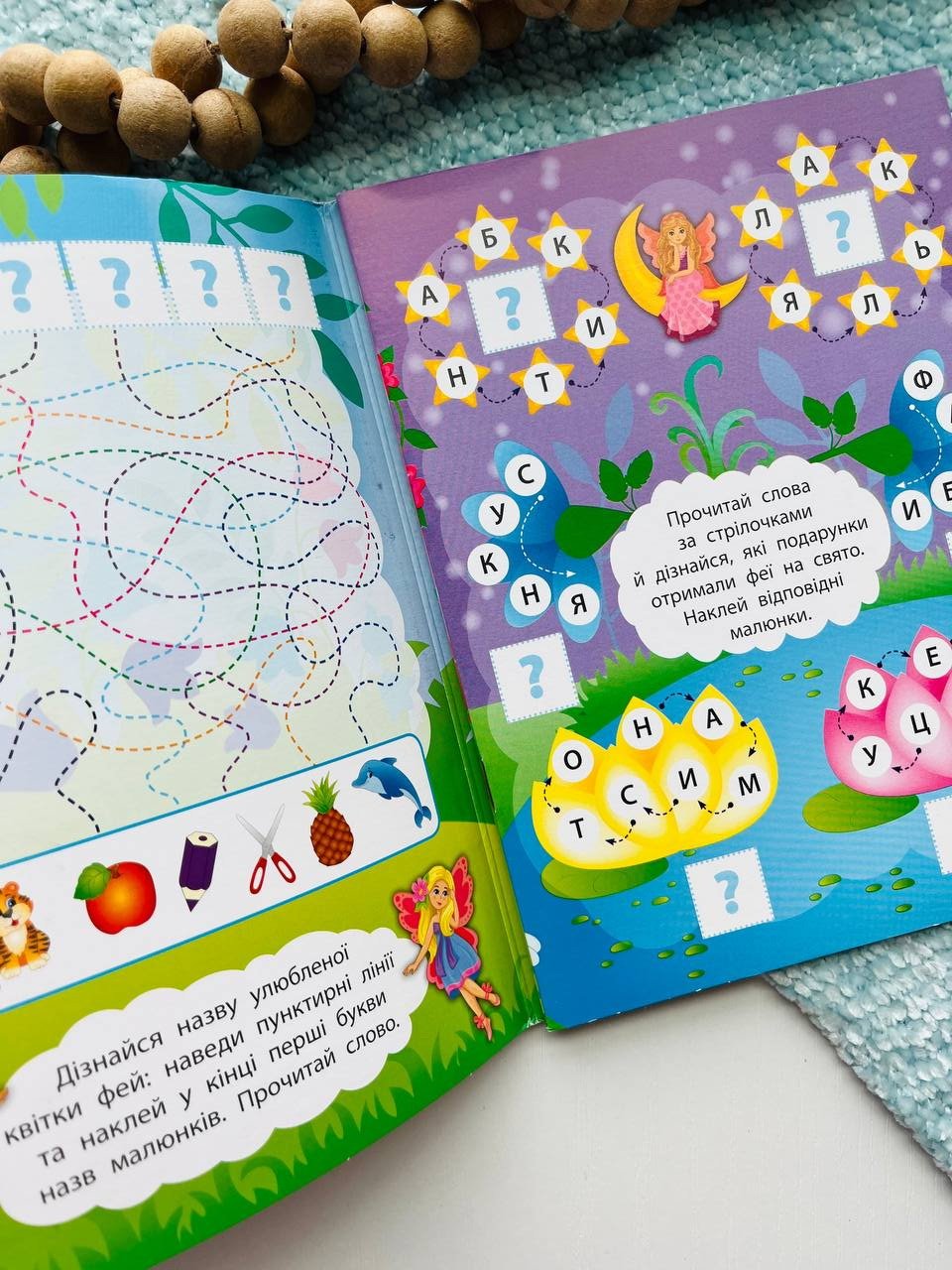 Книжка допоможе відпрацювати навички читання по складах. Під час занять хлопчики зможуть вирушити в захопливу мандрівку разом з піратами й потренуватися складати слова з наліпок, додавати пропущені букви, а також читати прості слова та словосполучення.