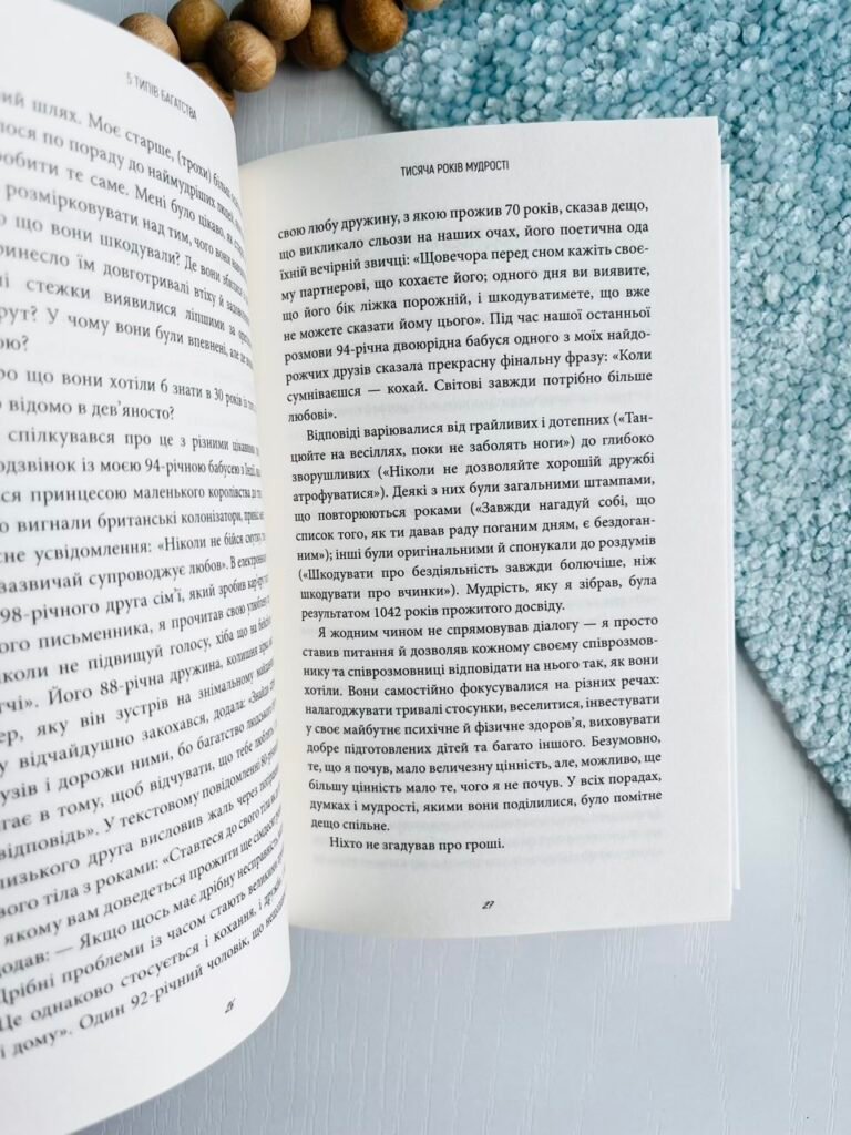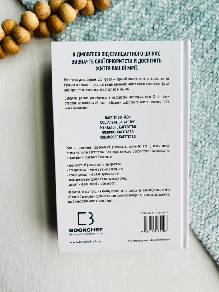 На основі трьох років досліджень, особистих експериментів і тисяч інтерв’ю Сагіл Блум створив новаторський проєкт, який допоможе побудувати життя на основі п’яти типів багатства: багатства часу, соціального багатства, ментального багатства, фізичного багатства та, звісно, фінансового. Життя, сповнене справжнього задоволення, вимагає наявності всіх п’яти типів достатку. Незалежно від того, де ви перебуваєте на своєму життєвому шляху, поради, зібрані в цій книзі, допоможуть вам діяти відповідно до ваших пріоритетів, ухвалювати ліпші рішення й будувати життя, про яке ви завжди мріяли.