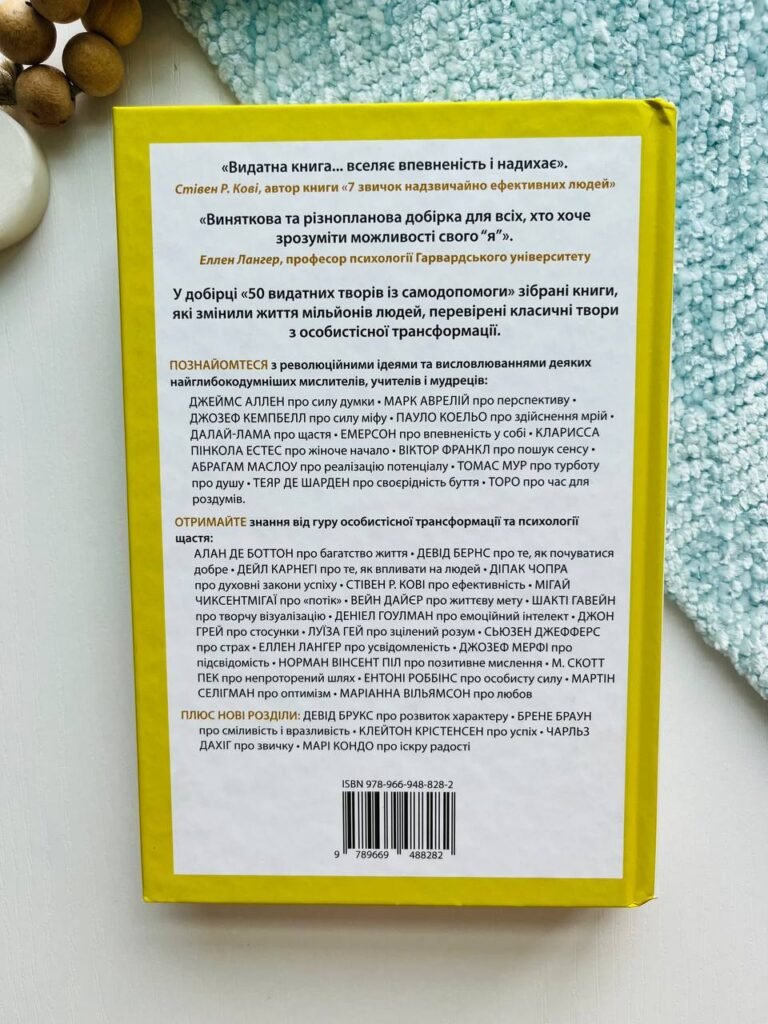 Написано тисячі книг із самодопомоги й особистісного розвитку, й кожна з них розкриває секрет успіху, самореалізації та щастя: як здобувати друзів і впливати на людей або розбудити в собі велетня. Том Батлер-Боудон проробив величезну роботу, щоб донести до нас основні ідеї та методи з «літератури про можливості». 50 розглянутих у цій книзі класичних творів — від давніх учень Будди і Лао-цзи й праць Бенджаміна Франкліна та Семюела Смайлза з формування характеру до сучасних бестселерів, як-от «Емоційний інтелект», «7 звичок надзвичайно ефективних людей», «Принцип 80/20» — являють собою найкраще з того, що стало відомим тільки від початку ХХ століття як «самодопомога»