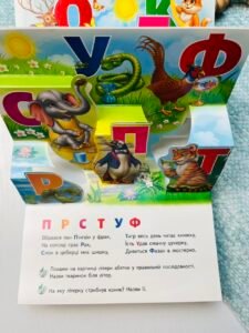 Розгортай панорамні сторінки – і літери оживають разом із їх пухнастими, хвостатими та пернатими друзями! 🦉🐍🐰