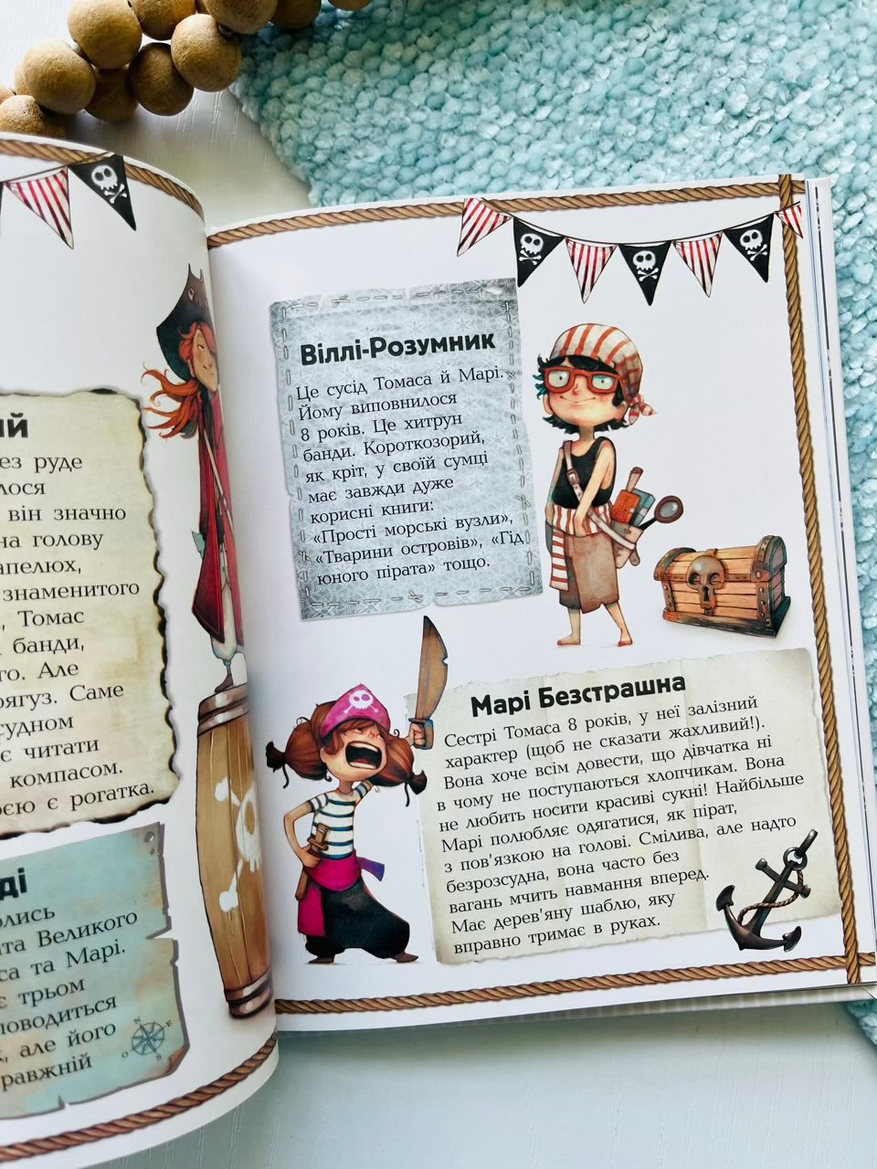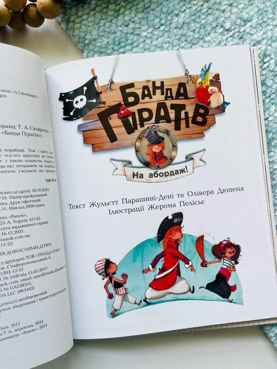 “Банда піратів. На абордаж!” — це захоплююча історія про пригоди піратів, зокрема Томаса Вогняного, Марі Безстрашної та Віллі-Розумника. Вони вирушають у подорож на своєму кораблі “Чорний Дракон”, готові до нових неймовірних пригод. Книга від видавництва “Ранок” ідеально підходить для юних читачів, має яскраві кольорові ілюстрації та якісну поліграфію, що робить її чудовим подарунком для дітей.