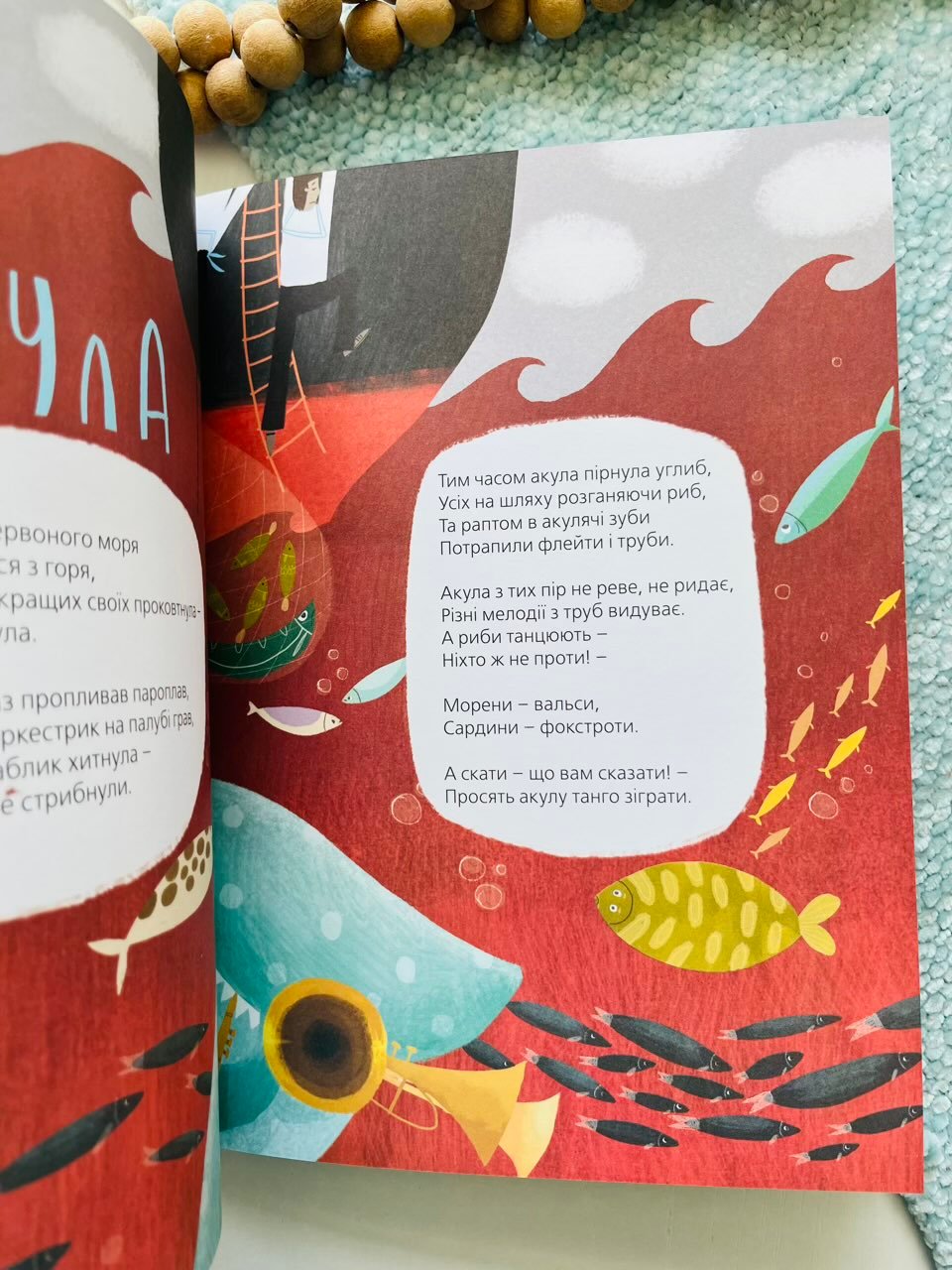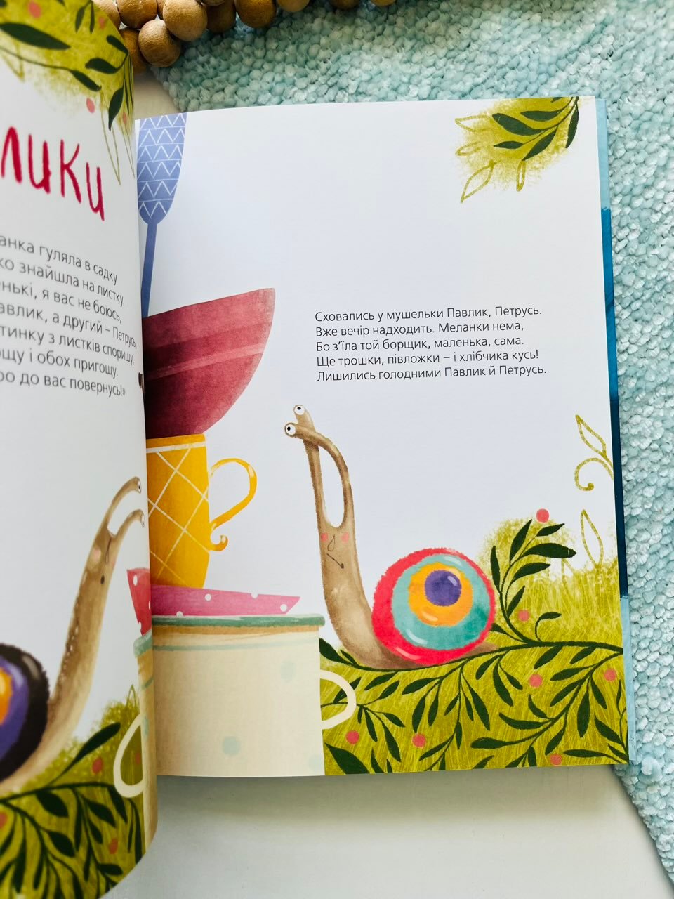 Добрі та веселі віршики про стоніжку, для якої потрібно купити півсотні пар взуття; про Мишку, яка, мріючи про нове хутерко, затягнула до своєї нірки… котячий хвіст; про Корову, яка навіть уміє вишивати; про маленького Равлика, про кота, акулу і лиса та багатьох інших звірят, яких намалювала художниця Юлія Пилипчатіна.