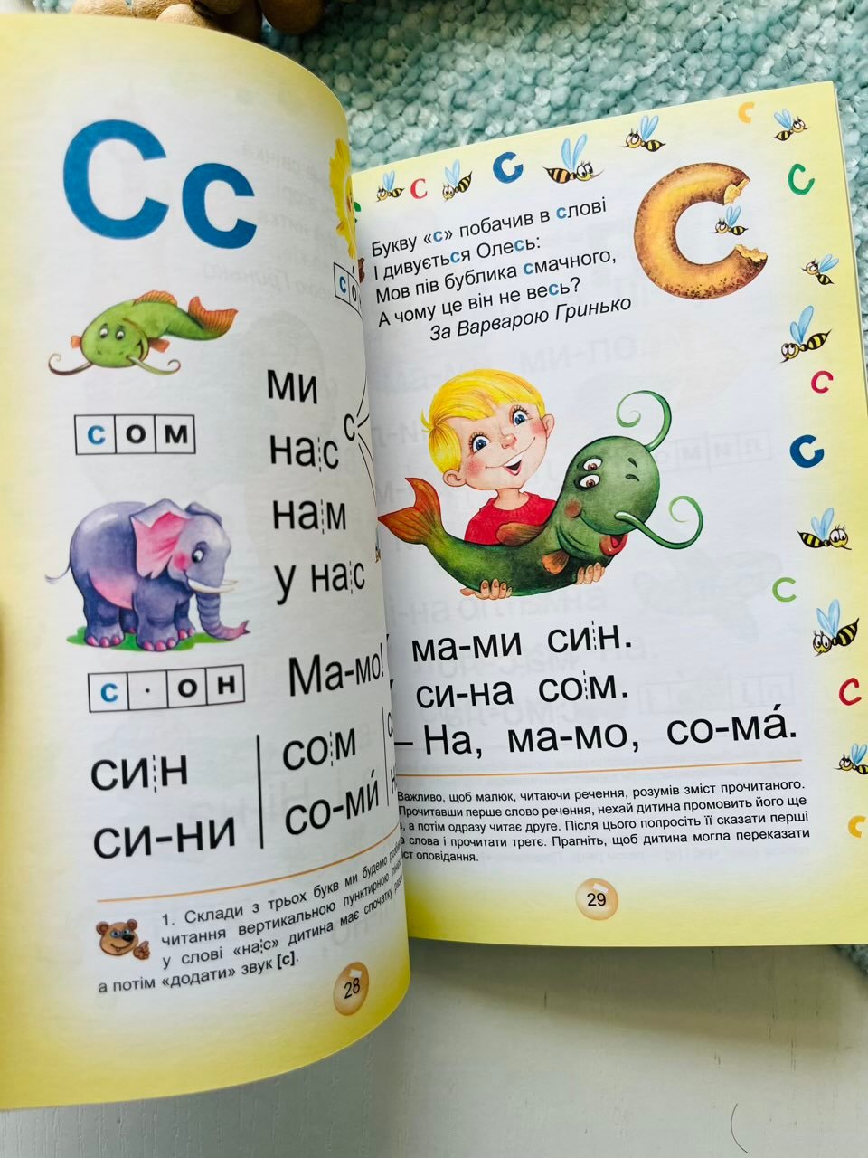 Дитина отримає уявлення про поняття: звук, буква, склад, наголос, основні види слів, речення тощо. Заняття за «Букварем» стимулюватимуть також розвиток сприйняття, уваги, мислення та мовленнєвих навичок.