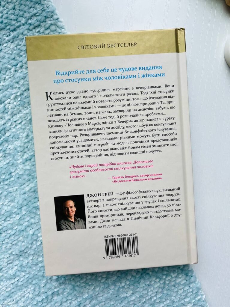 Бестселер в Україні!В Україні продано 25 000 примірників!Книжку “Чоловіки з Марса, жінки з Венери” автор написав з урахуванням досвіду та фактичного матеріалу, якими він оволодів, працюючи консультантом подружніх пар. Розкриваючи таємниці безконфліктного існування, допомагаючи усвідомити, що способи спілкування, емоційні потреби і моделі поведінки представників протилежних статей можуть бути надзвичайно різними, Джон Грей вчить, як знайти спільну мову “представникам різних планет”, дає шанс мільйонам сімей зміцнити свої стосунки, порозумітися, відновити колишні почуття.Це видання, безсумнівно, буде корисним і пізнавальним як для жіночої, так і для чоловічої аудиторії.Бестселер # за версією The New York Times!Світовий бестселер від визнаного експерта з покращення якості спілкування подружніх пар!Книгу видано багатьма мовами світу загальним накладом понад 50 мільйонів примірників!Класика світової науково-популярної літератури!Книжка допоможе зрозуміти особливості спілкування чоловіків і жінок.В основі підходу до відносин між чоловіками і жінками у книзі використовується, як метафора, припущення, що чоловіки і жінки настільки різні, що їх можна вважати вихідцями з двох різних планет. Джон Грей використовує метафору – римського бога Марса і богині Венери, як вираження стереотипів чоловіка і жінки відповідно. На противагу багатьом психологам, які більше звертають увагу на схожість між статями, Грей акцентує увагу саме на відмінностях. Як приклад типова проблема: жінкам здається, що чоловіки не вміють слухати. Це відбувається через те, що у важку хвилину жінці потрібно виговоритися, від чоловіка вона хоче отримати підтримку і визнання того, що її труднощі значущі. Чоловік же поспішає відразу же знайти рішення проблеми, замість того, щоб уважно вислухати.Джон Грей – американський сімейний психотерапевт, викладач і письменник. Автор книг-бестселерів, які продаються мільйонними тиражами по всьому світі. “Чоловіки з Марсу, жінки з Венери” найвідоміша його праця.