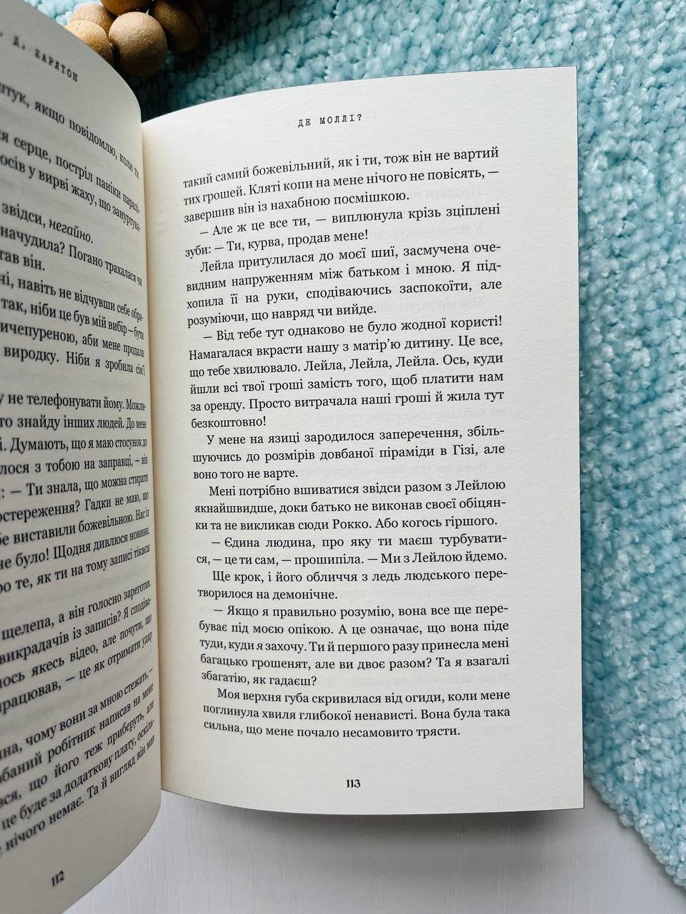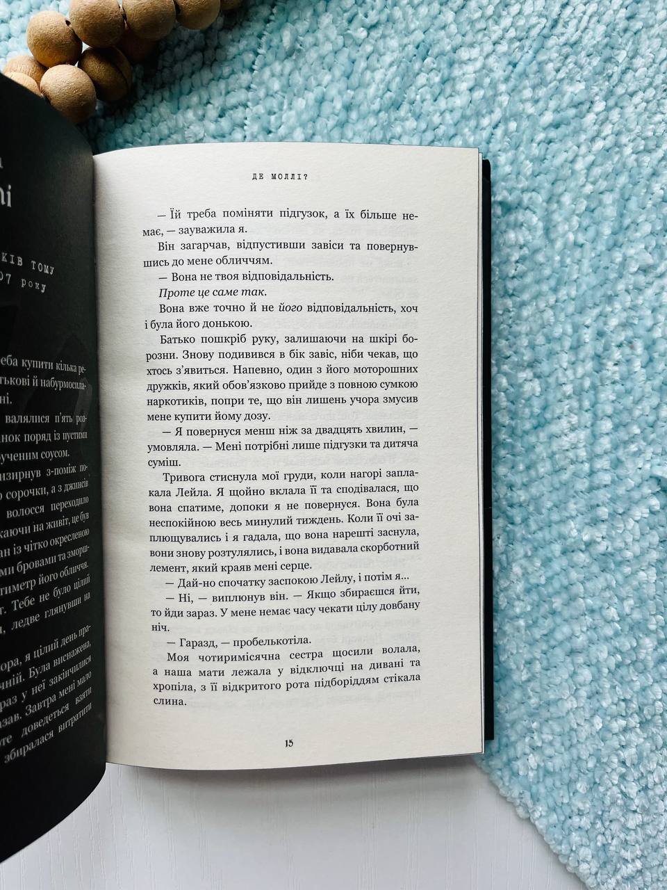 У цьому романі письменниця досліджує теми виживання, ідентичності та тривалих наслідків травм, які заважають будувати щасливе майбутнє. Це історія про надію в темні моменти, незламності незважаючи ні на що і про те, як любов може стати рятівним світлом у темряві і допомогти зцілитися. Це незалежна від основної серії книга, проте щоб повністю насолодитися розповіддю та краще зрозуміти минуле головної героїні, варто прочитати дилогію про Аделіна. Де Моллі? сподобається фанатам серії та любителям дарк-романів з таємницями, моторошними деталями та персонажами зі складним бекграундом.