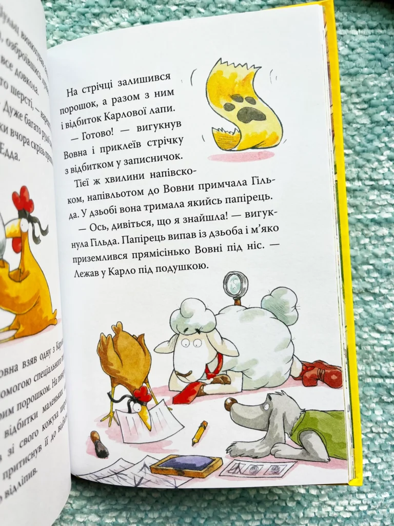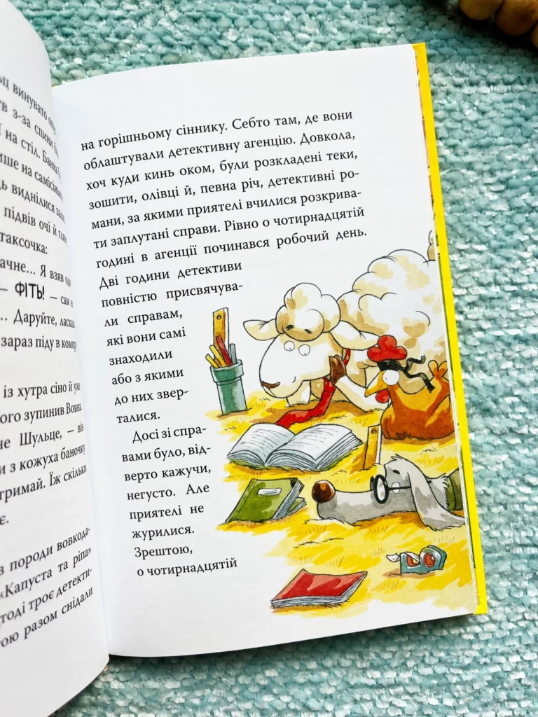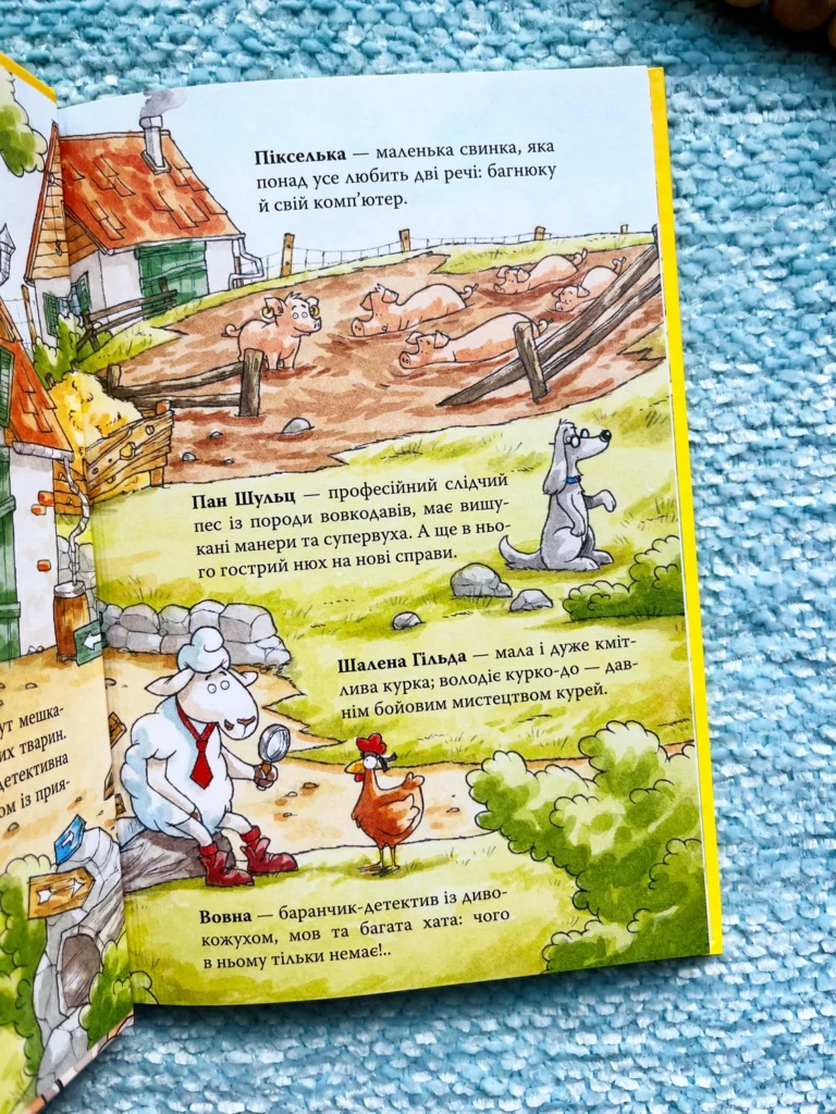 Якщо ферма стара, то там тиша й спокій? Та де! Баранчик Вовна разом із куркою Гільдою відкрив на фермі… детективну агенцію «На сіннику»! Відтоді приятелі-детективи розслідують справи так, що аж пір’я летить.