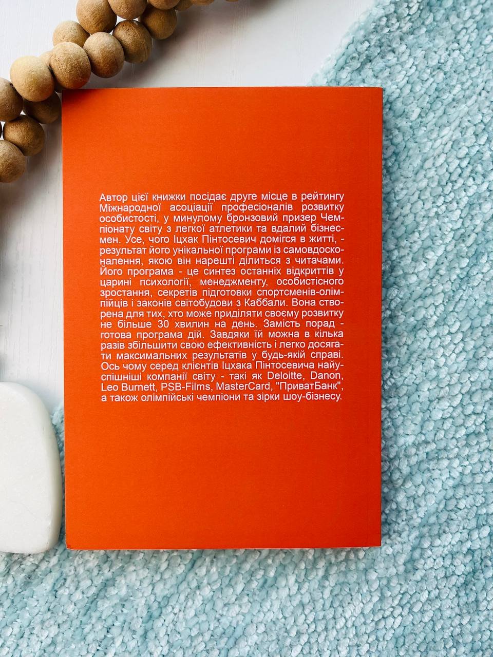 Все, чого Іцхак Пінтосевич досяг у житті, – результат його унікальної програми з самовдосконалення, якою він нарешті ділиться з читачами. Його програма – це синтез останніх відкриттів у галузі психології, менеджменту, особистісного зростання, секретів підготовки спортсменів-олімпійців та законів світобудови з Каббали. Вона створена для тих, хто може приділяти своєму розвитку не більше ніж 30 хвилин на день. Замість порад – готова програма дій. Завдяки їй можна в кілька разів збільшити свою ефективність та легко досягати максимальних результатів у будь-якій справі.