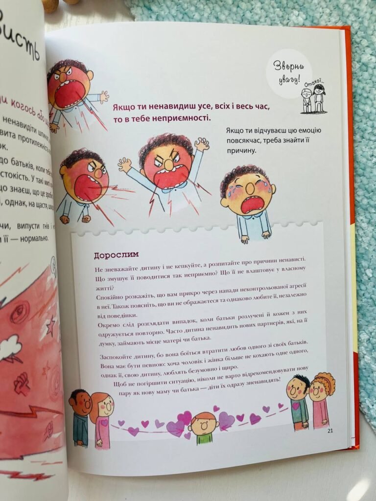 Що таке емоція? Чи є хороші та погані емоції? Чи потрібно їх проявляти? Що буде, якщо тримати емоції в собі? Ця книжка допоможе дітям та батькам зрозуміти емоції та навчитися їх розрізняти й керувати ними.