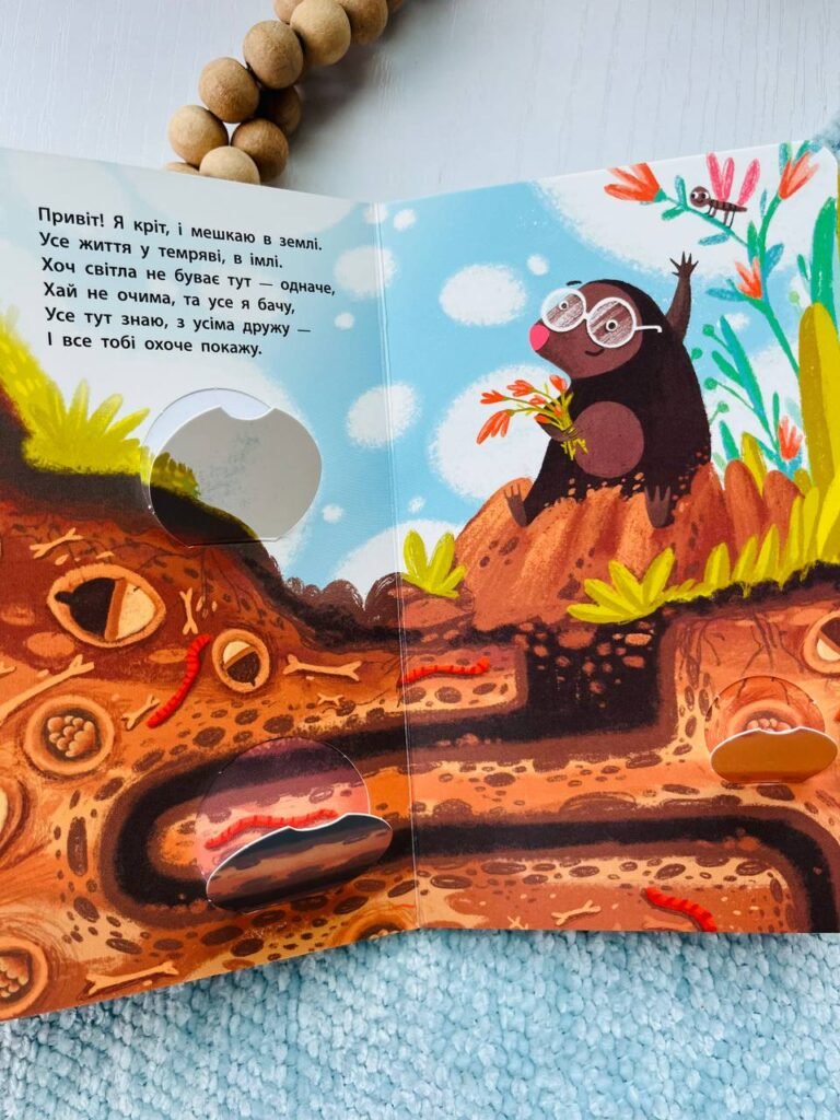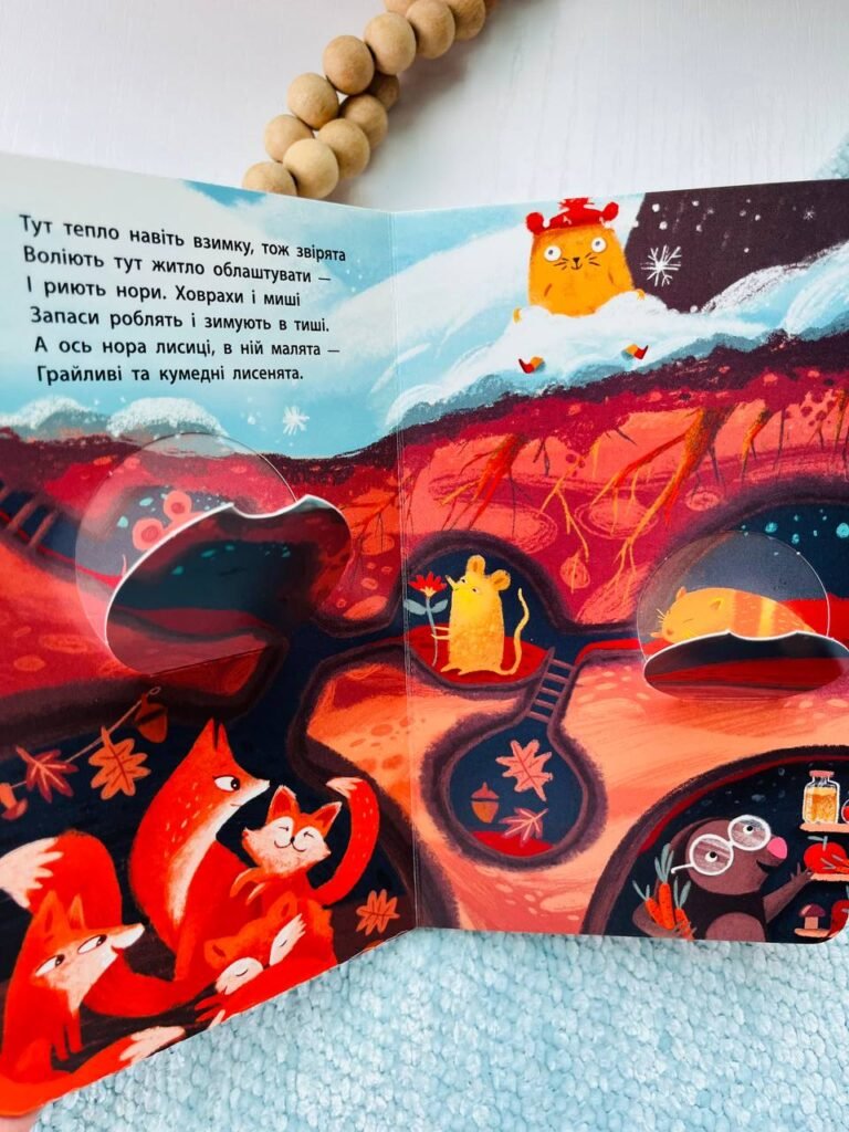 Разом з головними героями книжок ми досліджуємо їхні домівки. Піднімаємось вище і вище на дерево та у небо, або занурюємось нижче і нижче у шари грунту та моря.