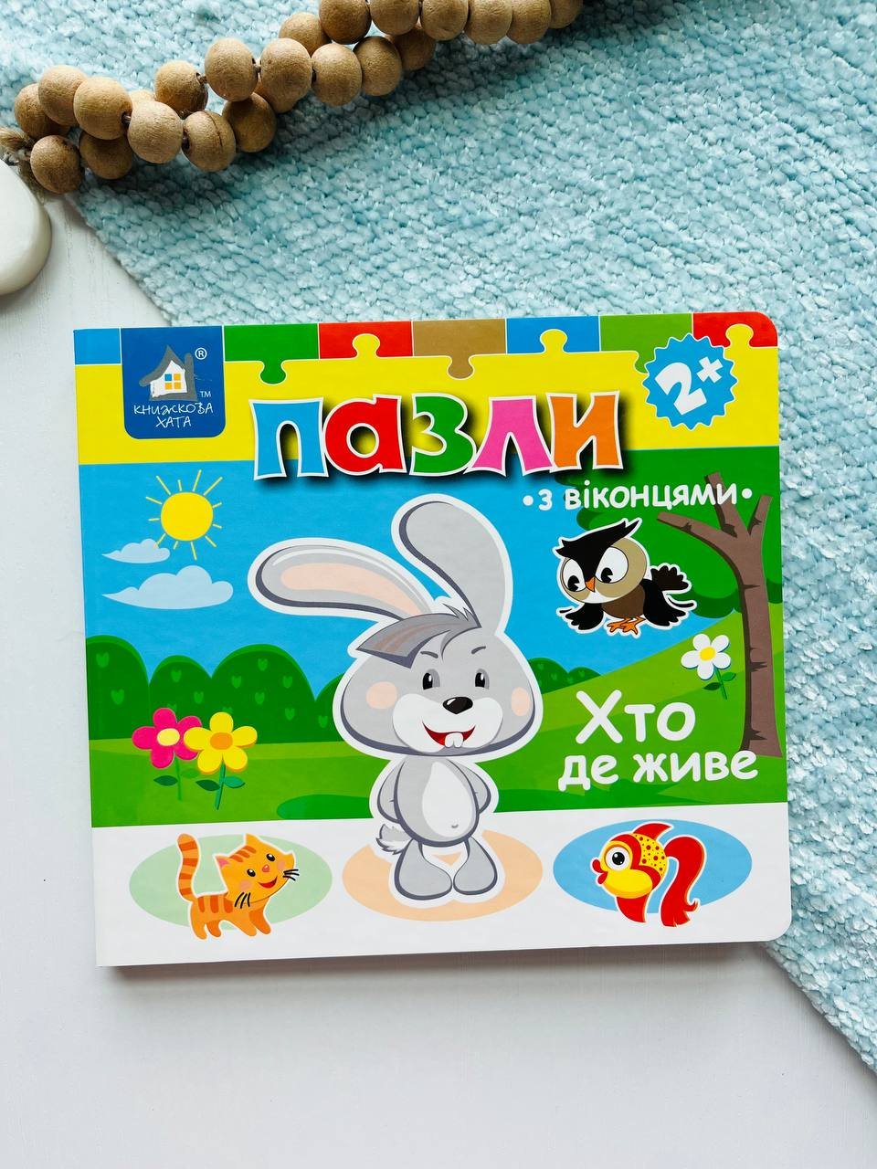 Книжка-пазл з віконцями “Хто де живе?” від видавництва “Книжкова Хата” – це чудове поєднання розваги та навчання, створене спеціально для найменших читачів.