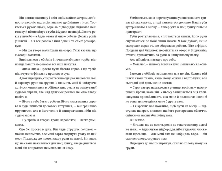 Її чоловік Адам — повна протилежність. Він — письменник, чия кар’єра так і не зрушила з місця. Адам дедалі більше втомлюється від їхнього шлюбу, адже Сара постійно на роботі. У віддаленому будинку серед лісів — другій оселі Сари й Адама — чоловік заводить пристрасний роман з Келлі Саммерс.