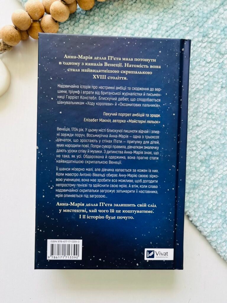 Венеція, 1704 рік. У цьому місті блискучої пишноти відчай і злидні завжди поруч. Восьмирічна Анна-Марія — одна з трьохсот дівчаток, що зростають у стінах П’єти — притулку для дітей, яких народили повії. Попри суворі правила, дівчаткам змалечку дають уроки співу й музики. З дитинства Анна-Марія знає, що не така, як усі. Обдарована й одержима, вона прагне стати найвидатнішою скрипалькою Венеції.
